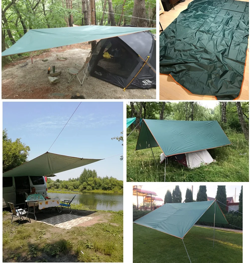 La mosca de la lluvia puede ser ampliamente utilizada como lona de supervivencia, refugio de hamacas, cubierta de cocina al aire libre, tienda simple, huella de tienda, hoja de tierra y sombra instantánea.