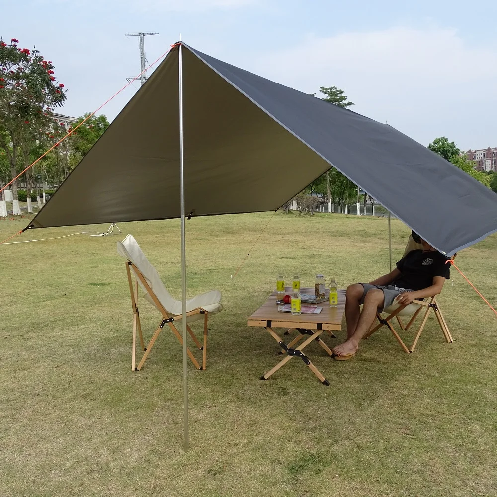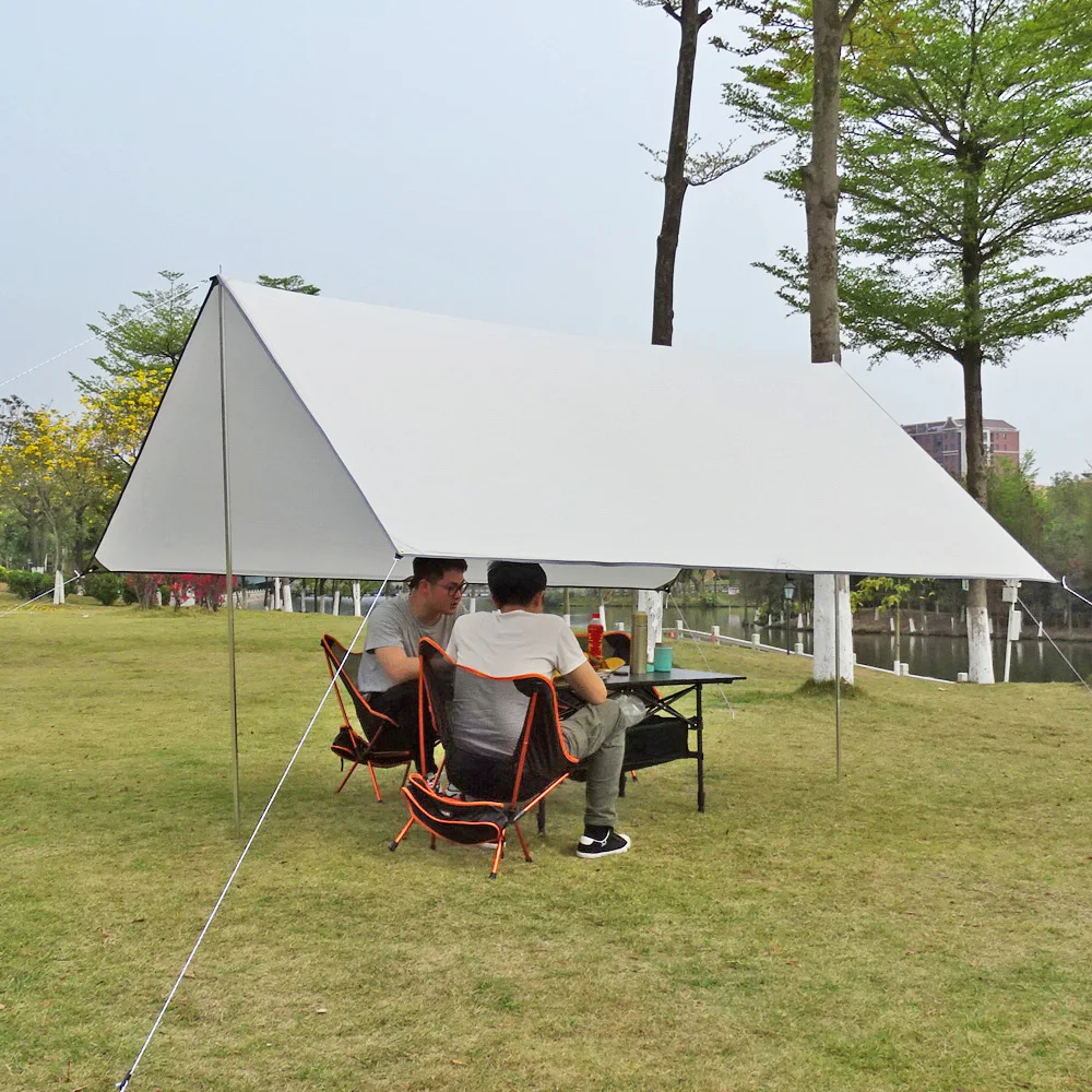 Este toldo es muy grande, el área de cubierta más grande es de 9 ~ 12 metros cuadrados. Tela de poliéster, resistencia a la abrasión, resistencia al desgarro. Anti UV Craft, bloqueando más del 90% de los rayos ultravioleta; Tela impermeable, índice impermeable 2000mm. Puede ser una tienda de campaña simple, a prueba de viento y lluvia, tienda de campaña para viajes al aire libre.