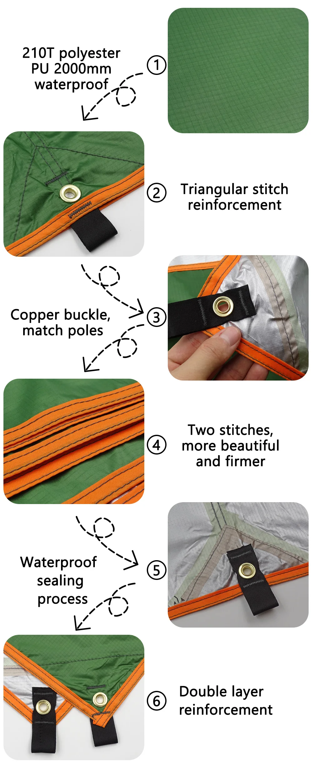5. Puede cubrir la superficie de la tienda, reducir el ruido causado por las gotas de lluvia que caen en la parte superior de la tienda, le permite dormir bien.