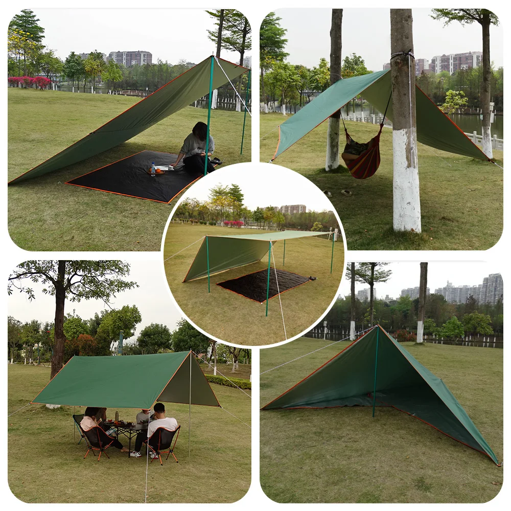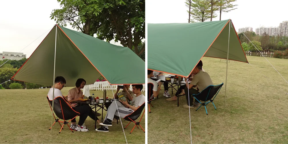 La lona verde da a las personas la sensación de estar cerca de la naturaleza. Es adecuado para que los entusiastas del aire libre acampen y exploren. También es adecuado para ser como una pérgola en el patio trasero y el vestíbulo.