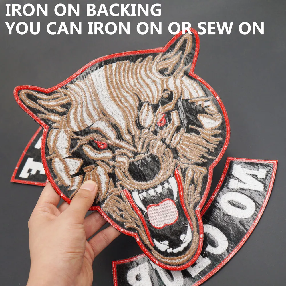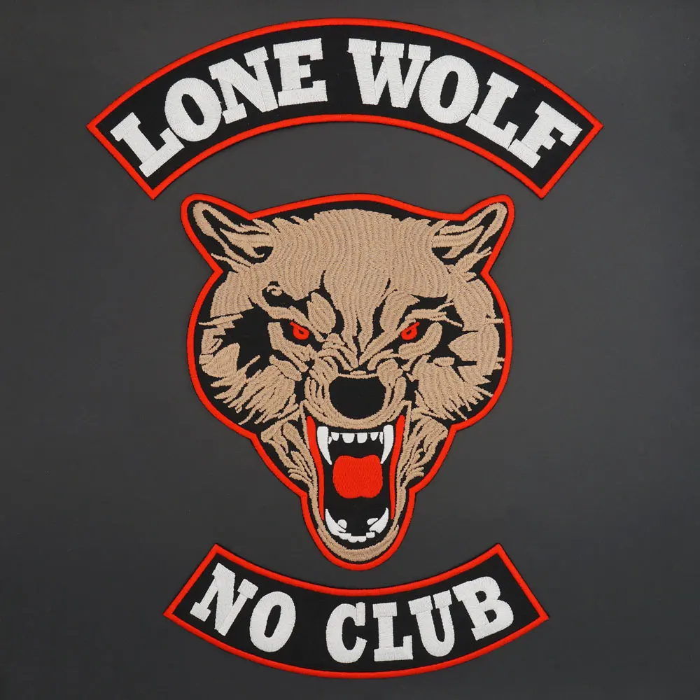 Lone Wolf No Club-Aplique de hierro bordado, etiqueta de costura, parches de motorista Punk, accesorios de ropa, insignia