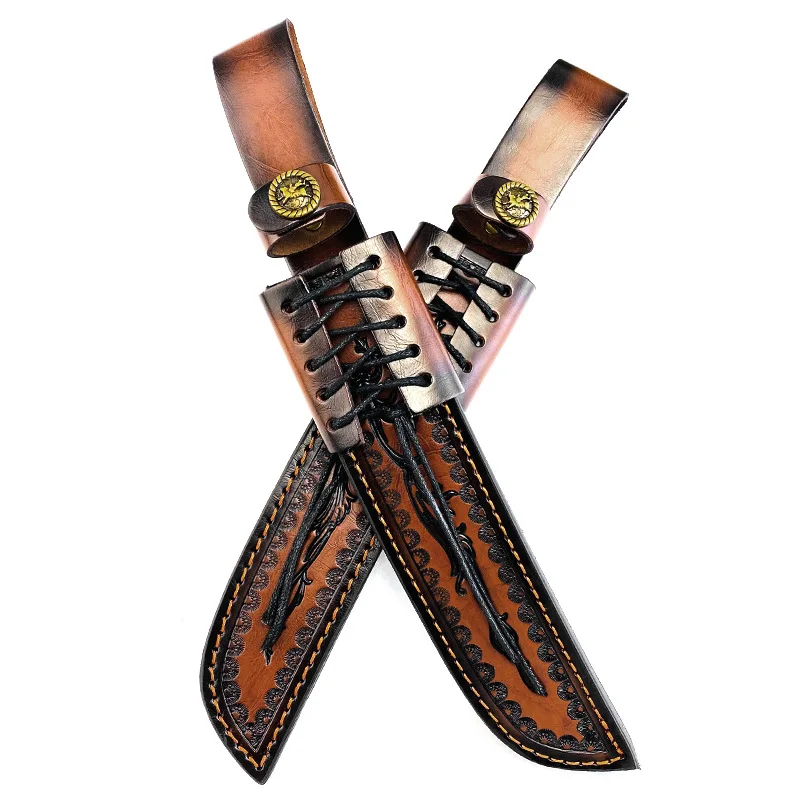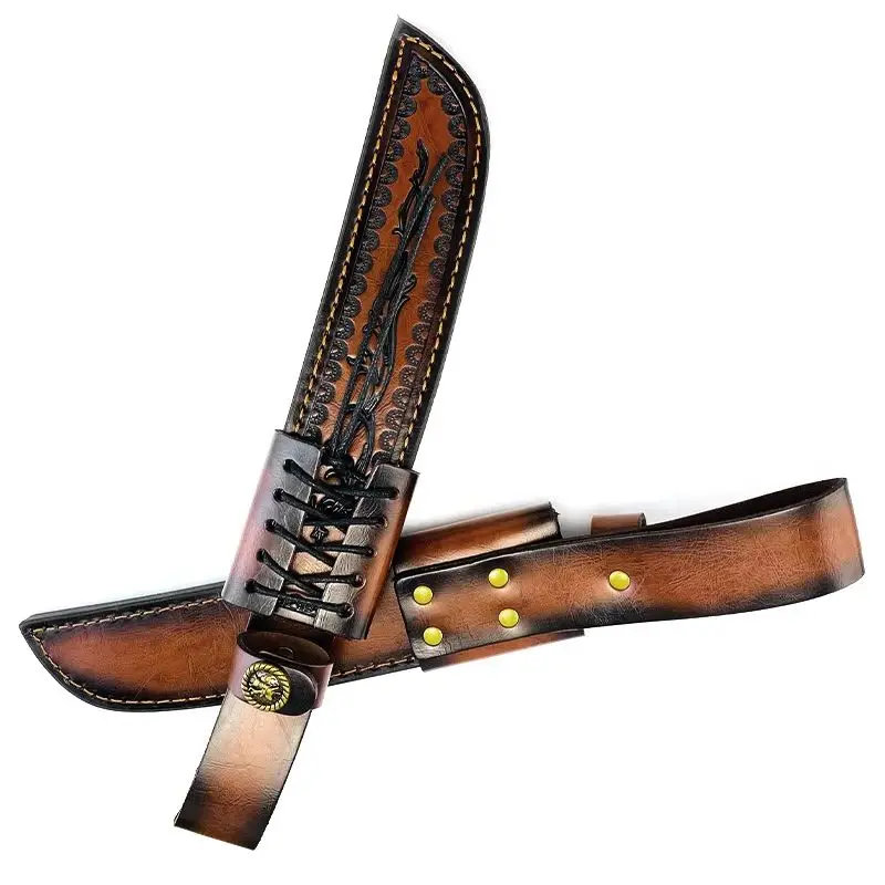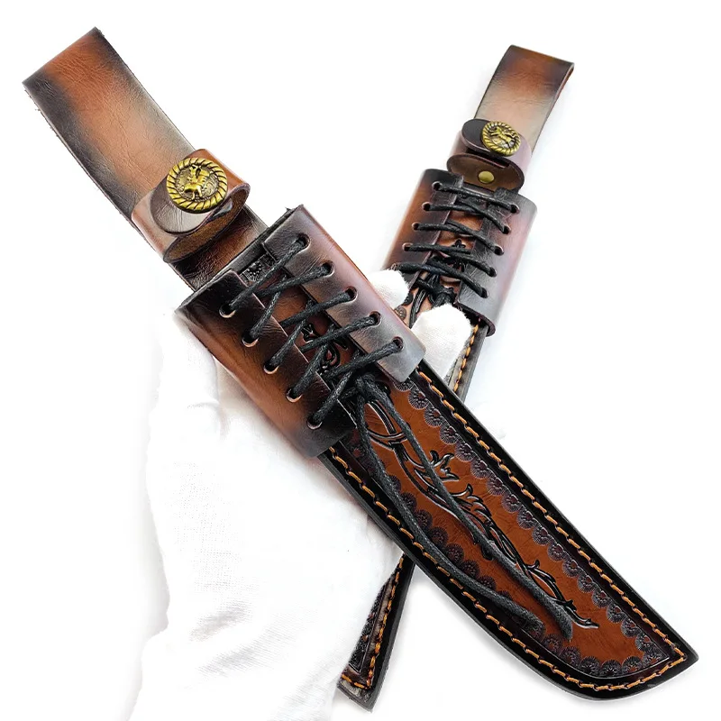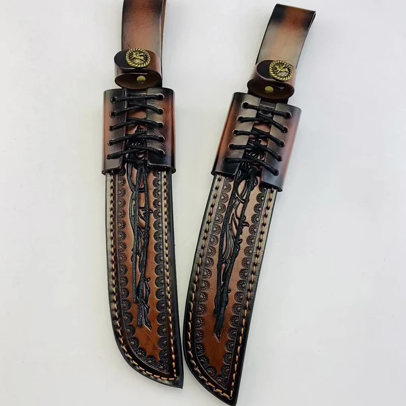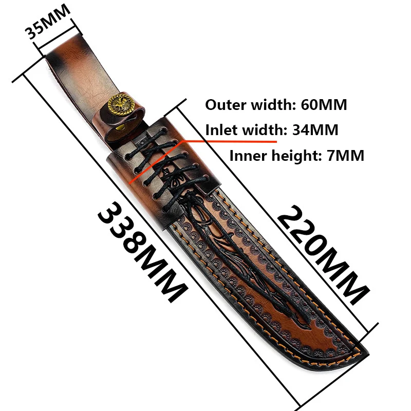 Funda de cuchillo recta grande de cuero de vaca genuino de longitud completa de 338MM