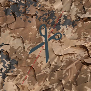 Las redes de camuflaje a granel vienen en una variedad de colores y patrones y se pueden cortar fácilmente a la longitud precisa que necesite con un par de tijeras estándar (excepto las redes de estilo militar con el respaldo de malla). Usando una pistola de anillo de cerdo y paracord, incluso puede personalizar sus propios anchos para crear la forma y el tamaño perfectos para su proyecto específico.
