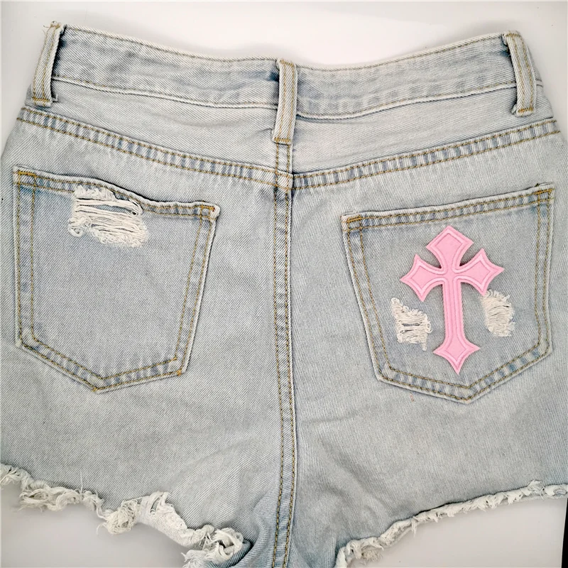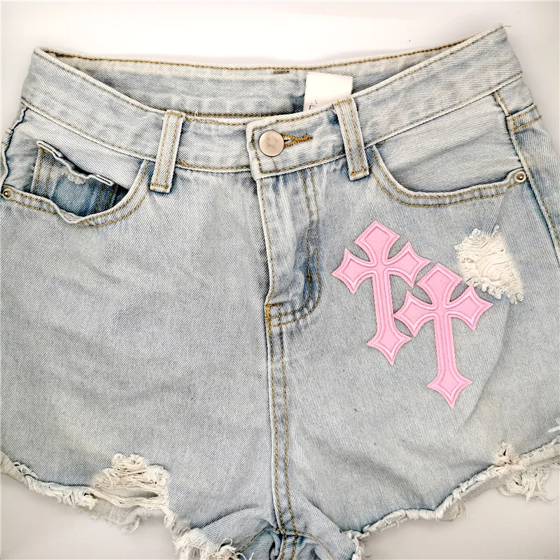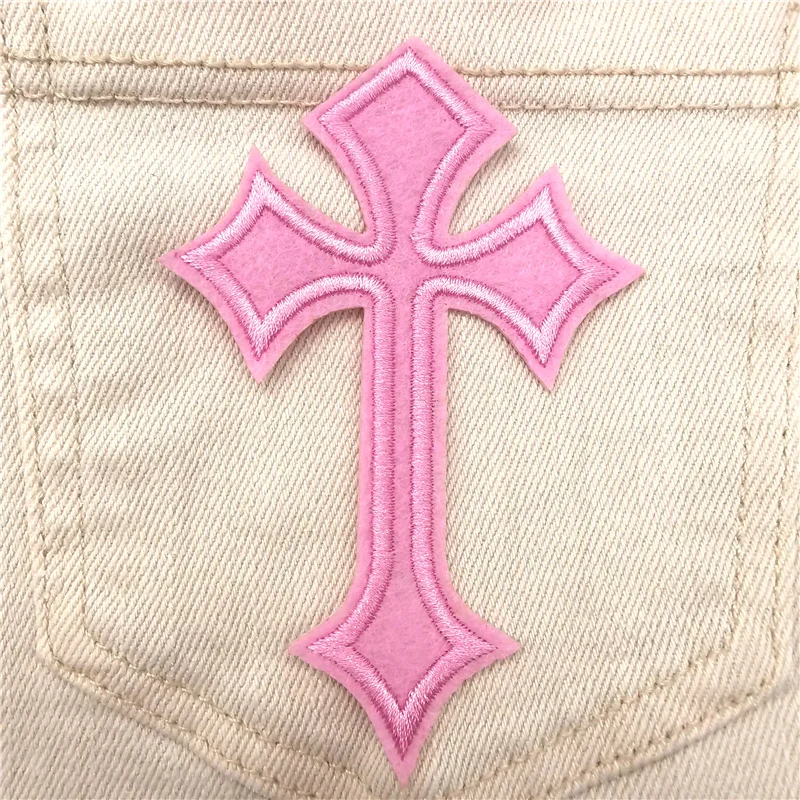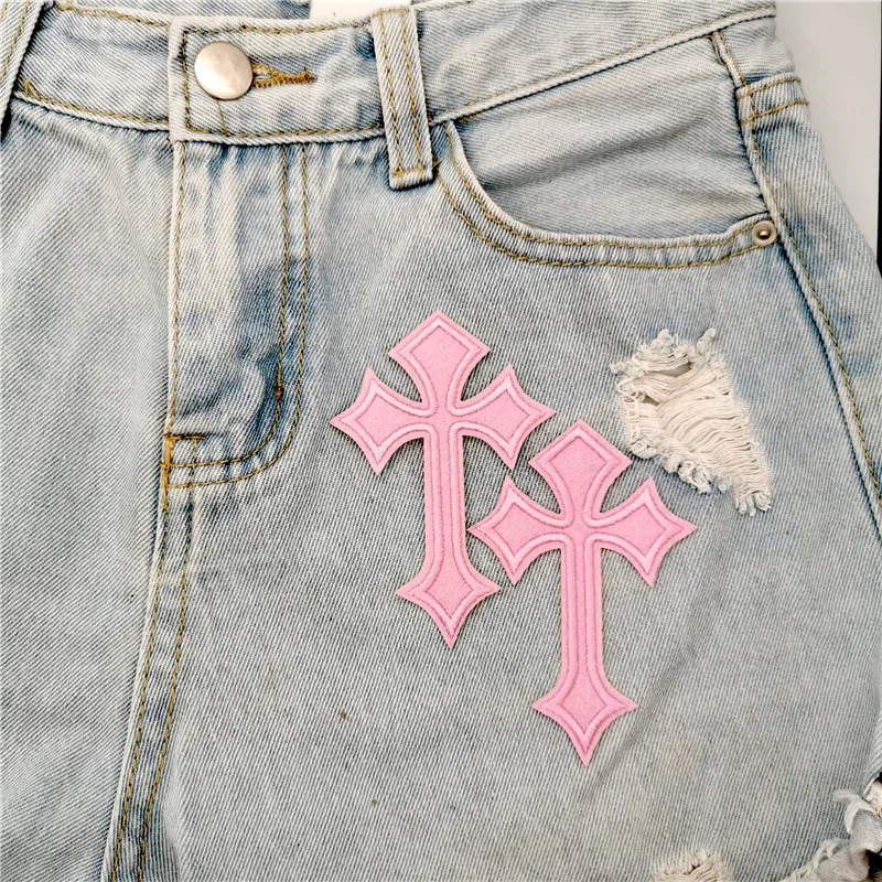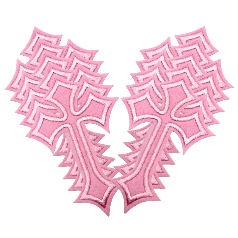 Juego de 10 Uds. De parches cruzados rosas para chaqueta, pantalones vaqueros, suministros de costura, insignias decorativas, apliques para planchar ropa, parche bordado cruzado