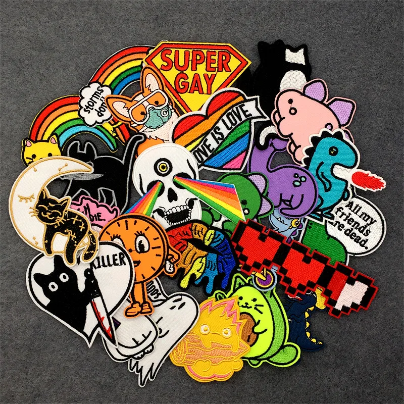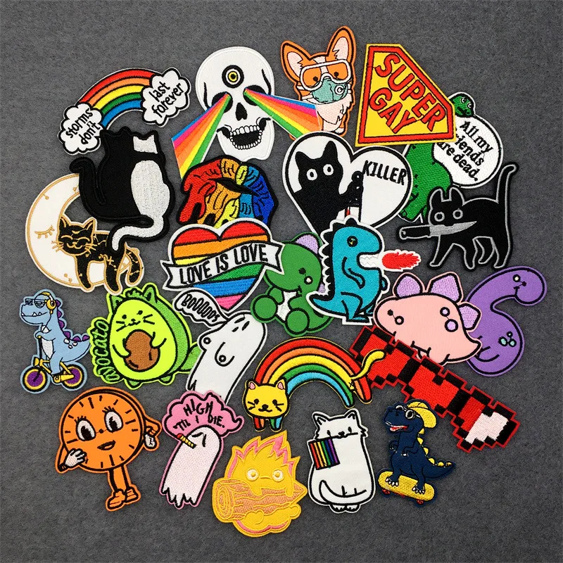 Lote de 25 unidades de parches de aminas para ropa, pegatinas bordadas de dibujos animados para ropa, conjunto de parches para planchar, apliques de costura