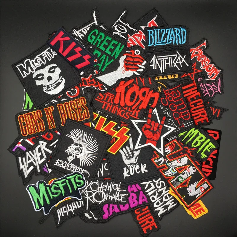 Lote de 50 Uds. De parches mixtos para planchar para ropa, chaqueta, pantalones vaqueros, insignias bordadas, pegatinas para ropa, apliques DIY, banda Rock Stripe