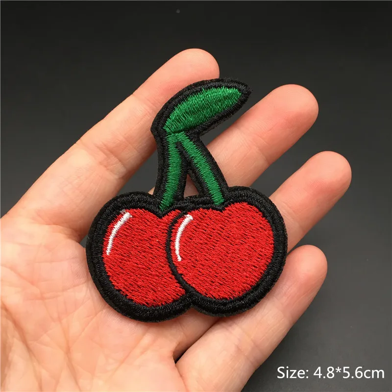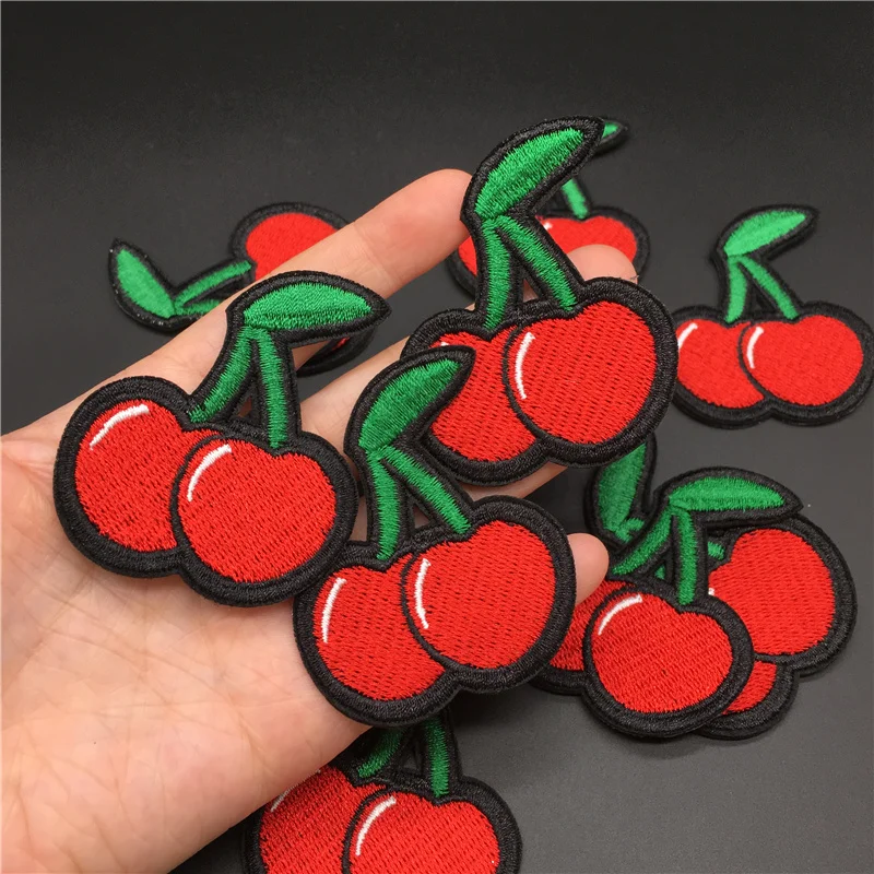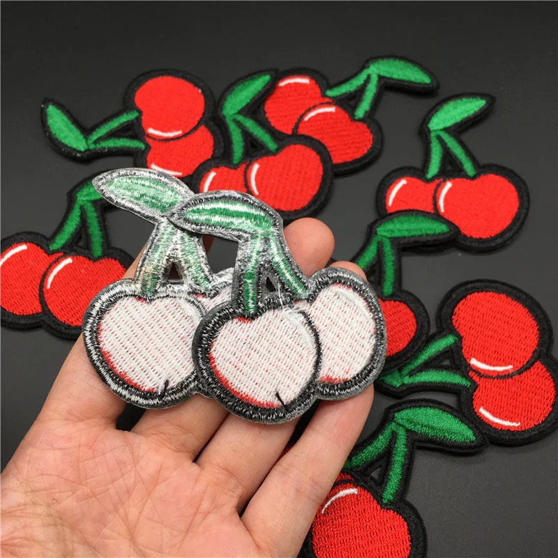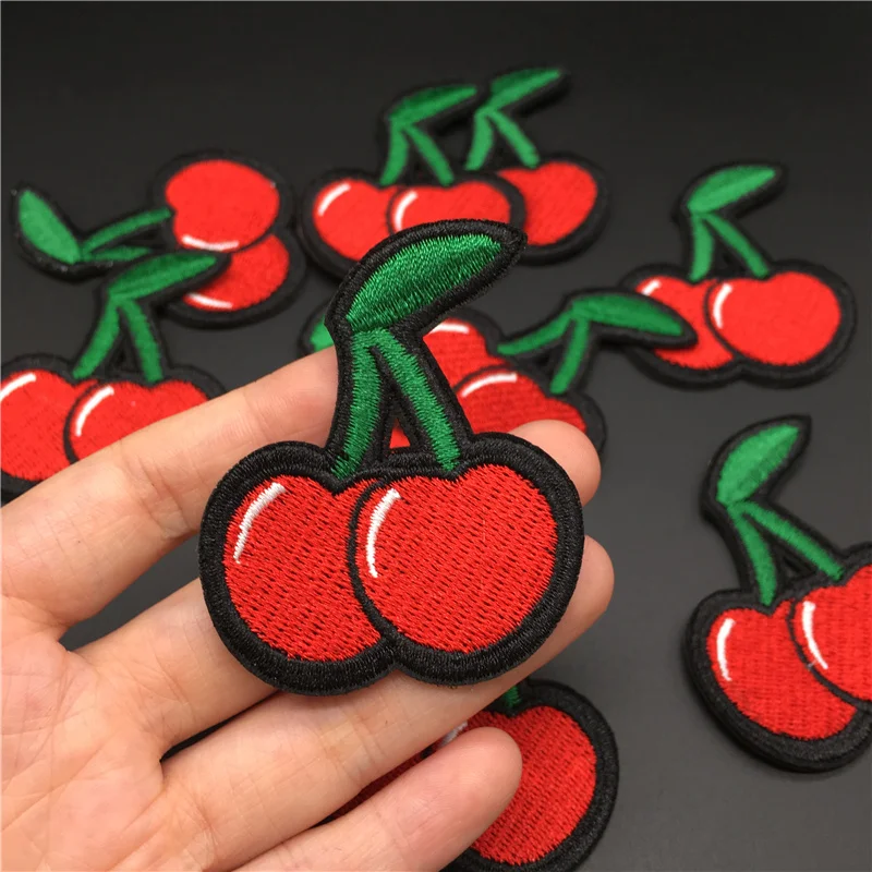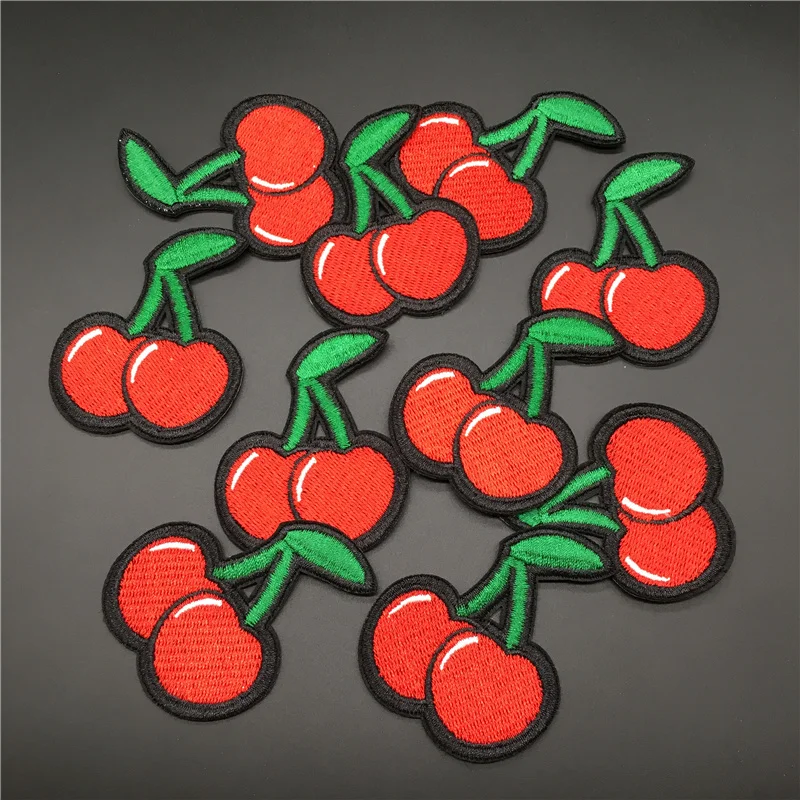Lote de parches de cereza para ropa, parches bordados de dibujos animados para planchar en la ropa, apliques de pegatina de costura de camiseta Diy, 10 piezas