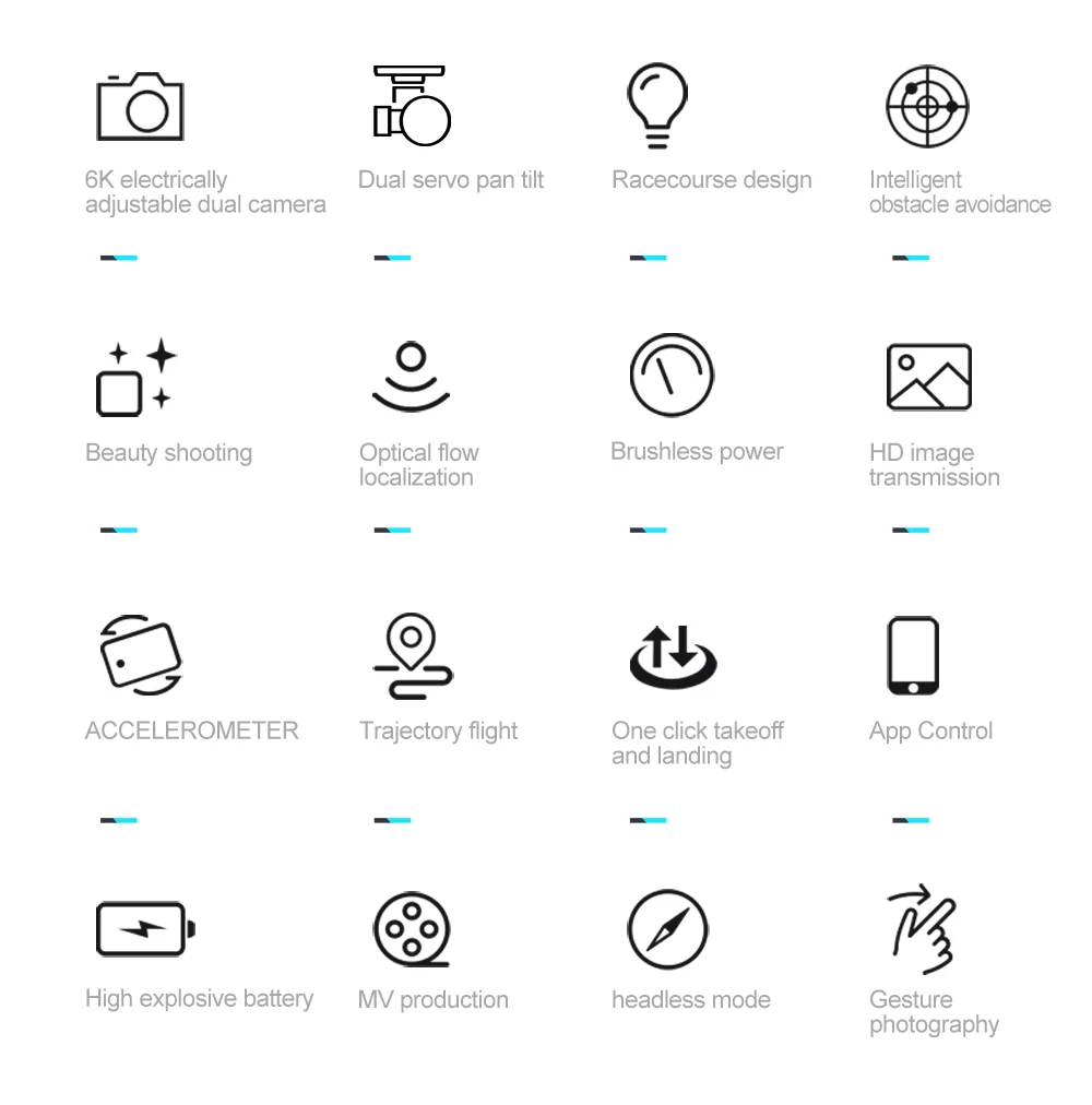1. La lente frontal se coloca con gran angular 8K de alta definición WIFI, la lente inferior de alta definición con flujo óptico puede cambiar el ángulo de la Cámara,