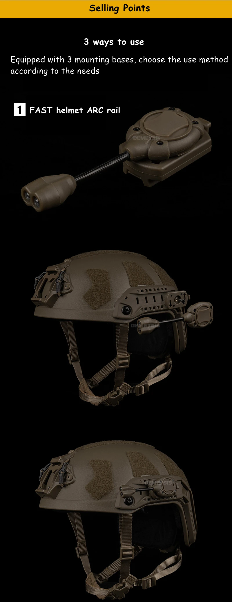 🔦 Luz LED para casco táctico| Montaje de 3 vías| Modo múltiple
