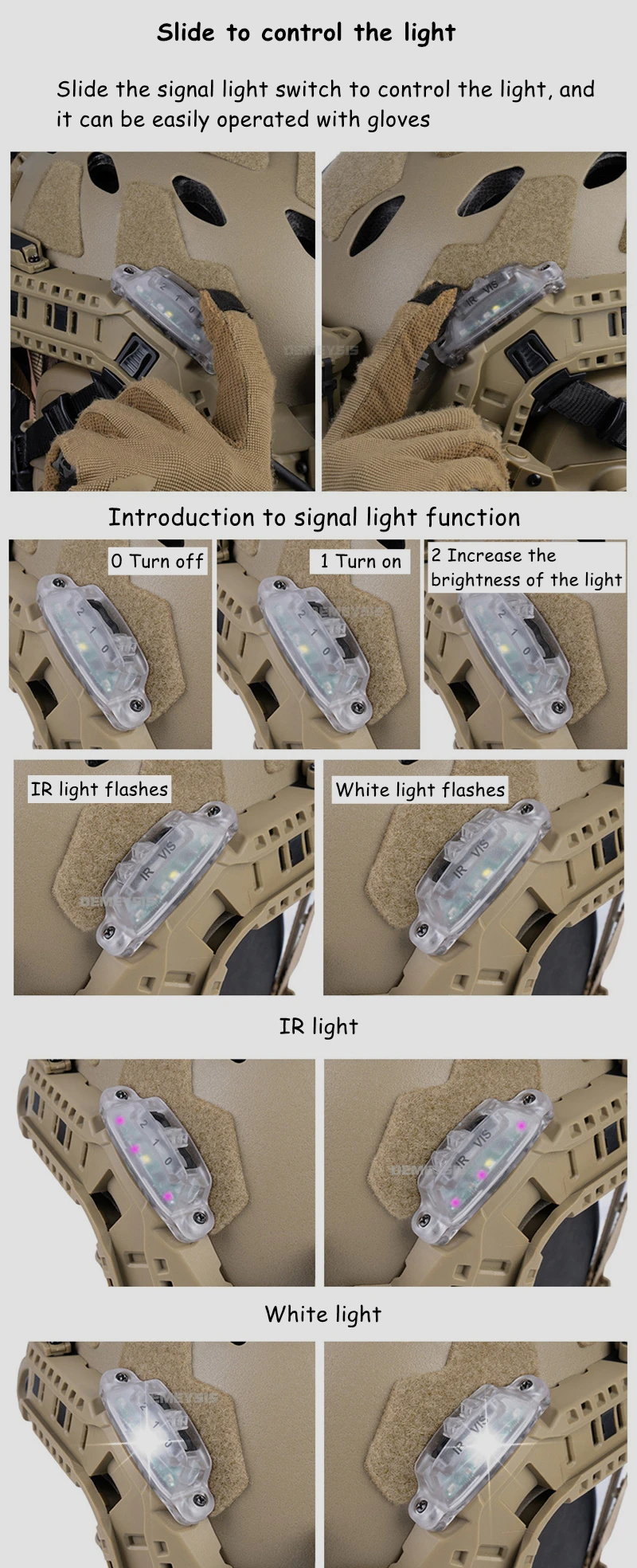 Luz de señal táctica para casco - Sistema de riel ARC