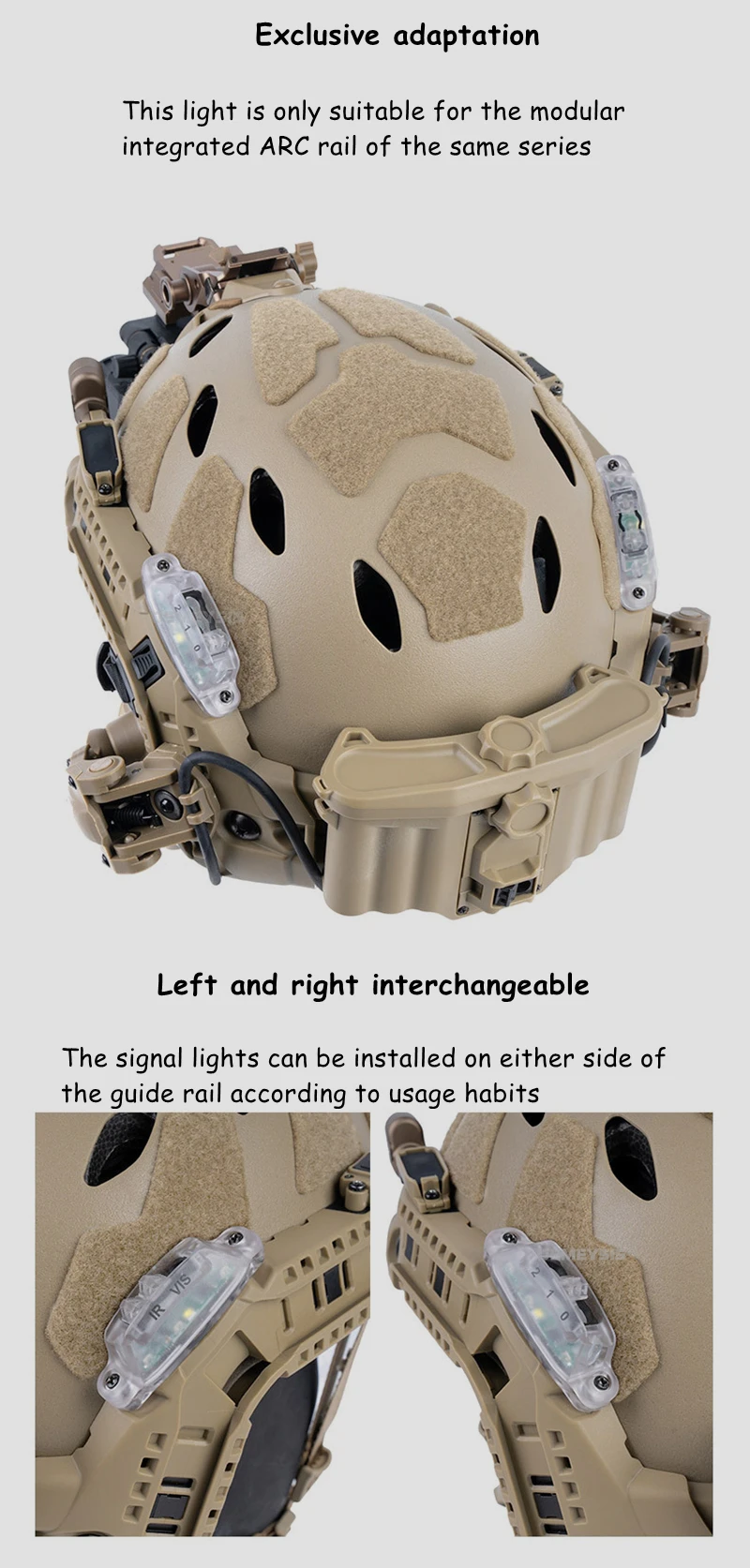 Luces de riel para casco CS Airsoft, montaje en riel de arco Modular, luz de señal IR/blanca, lámpara táctica para casco, accesorios para casco de caza - imagen 3