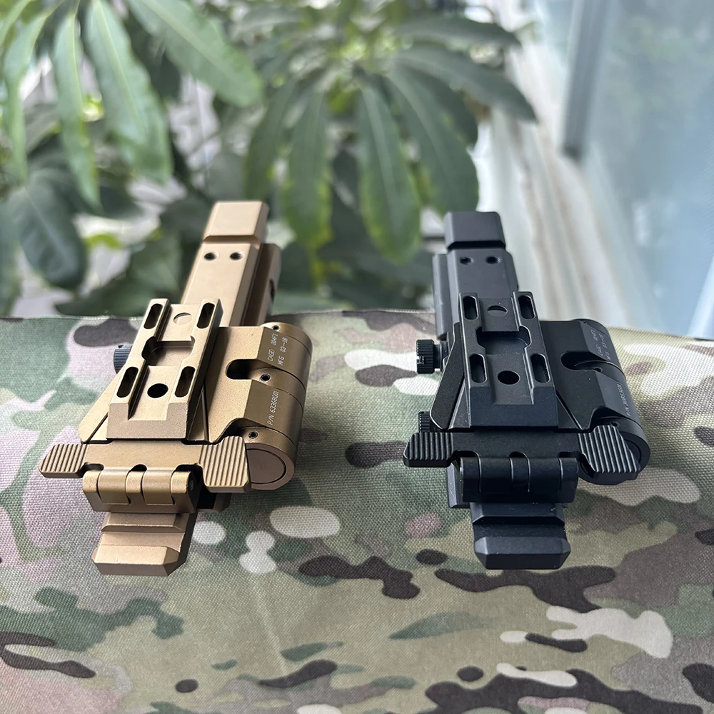 Soportes abatibles para EOTech disponibles con y sin rieles y se adaptan a una configuración de perfil bajo y de elevación de 5/8".