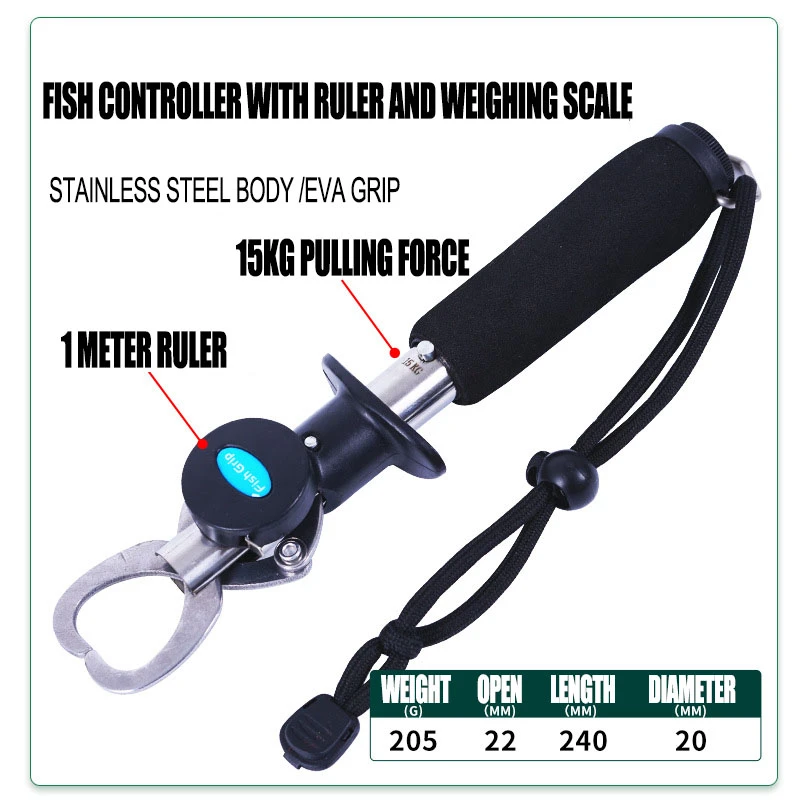 Luya-Soporte de pinza de pesca, alicates de escala, abrazadera de pescado con escalofón, regla, pinza plegable, abrazadera de agarre de pesca profesional