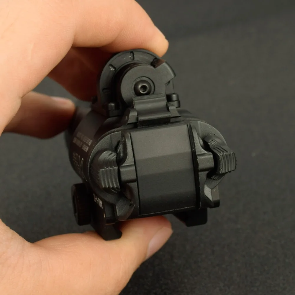 * Pistolas y armas largas con rieles Picatinny o universales.