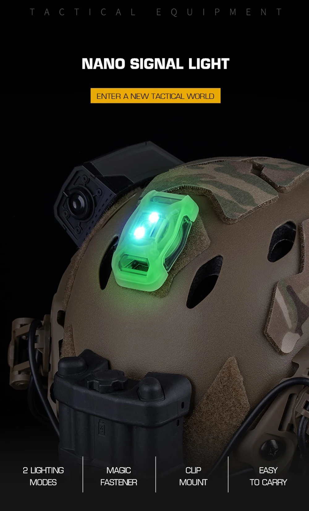 Luz para casco NANO, 2 modos para motocicleta, ciclismo, caza, pesca, lámpara de señal LED, lámparas tácticas de identificación IR, chaleco MOLLE, equipo
