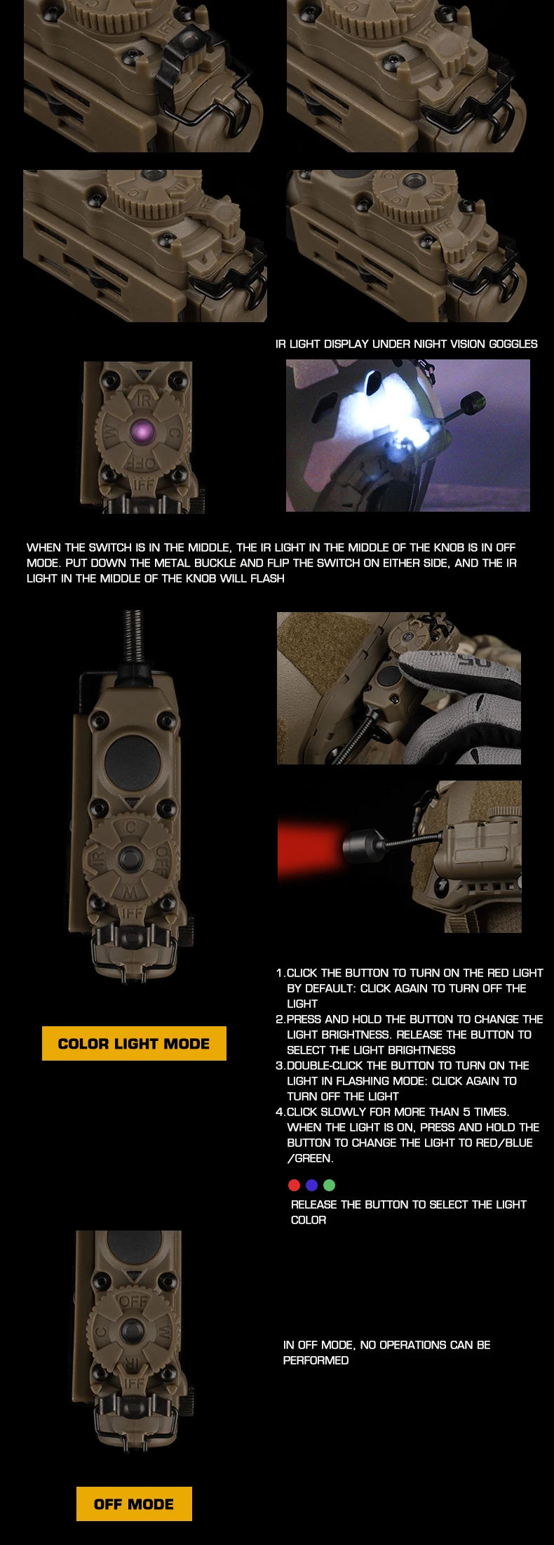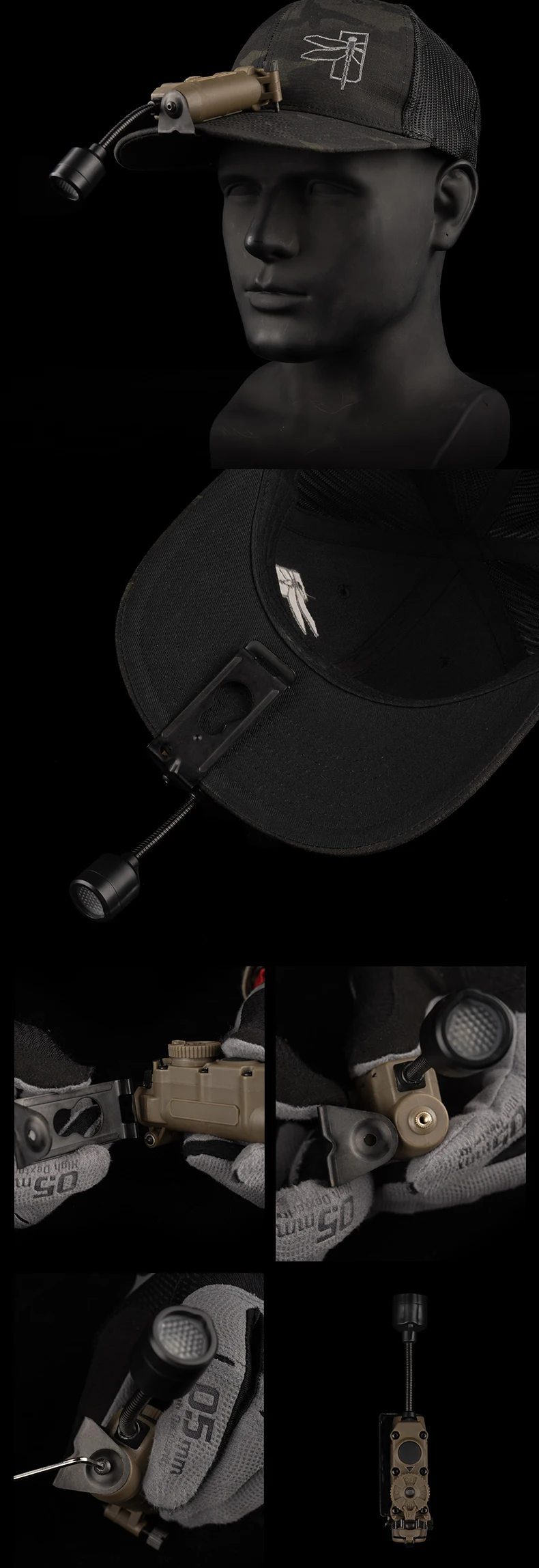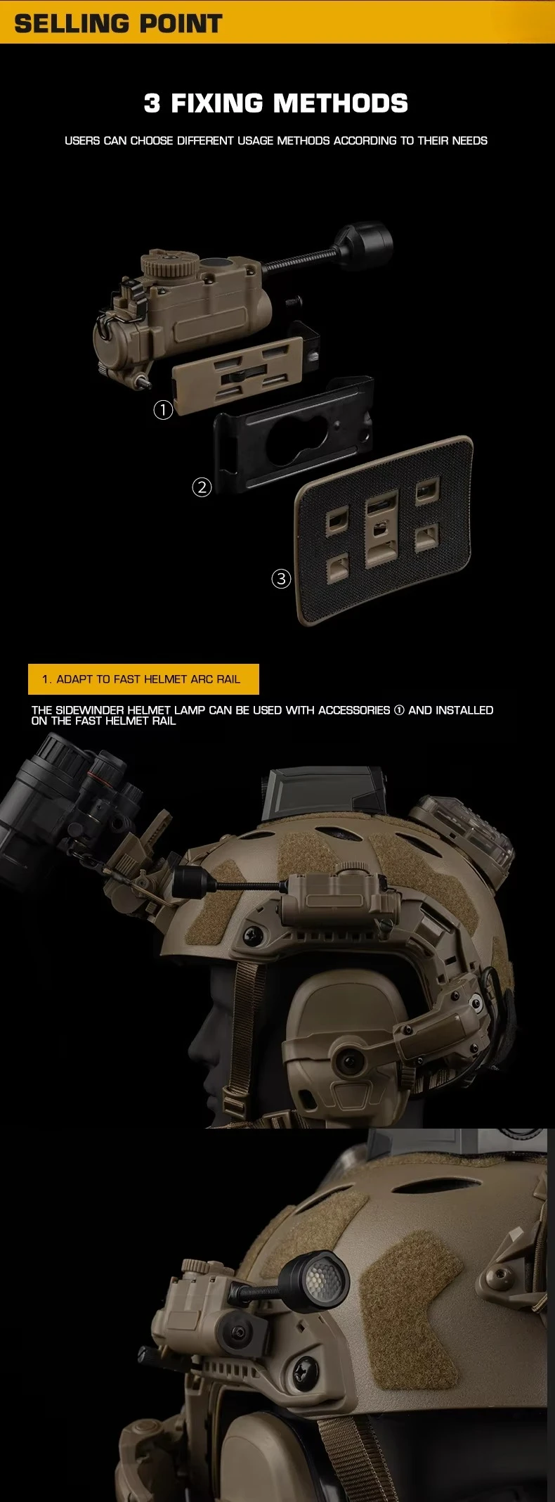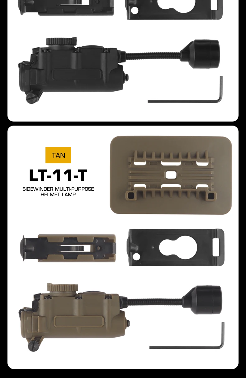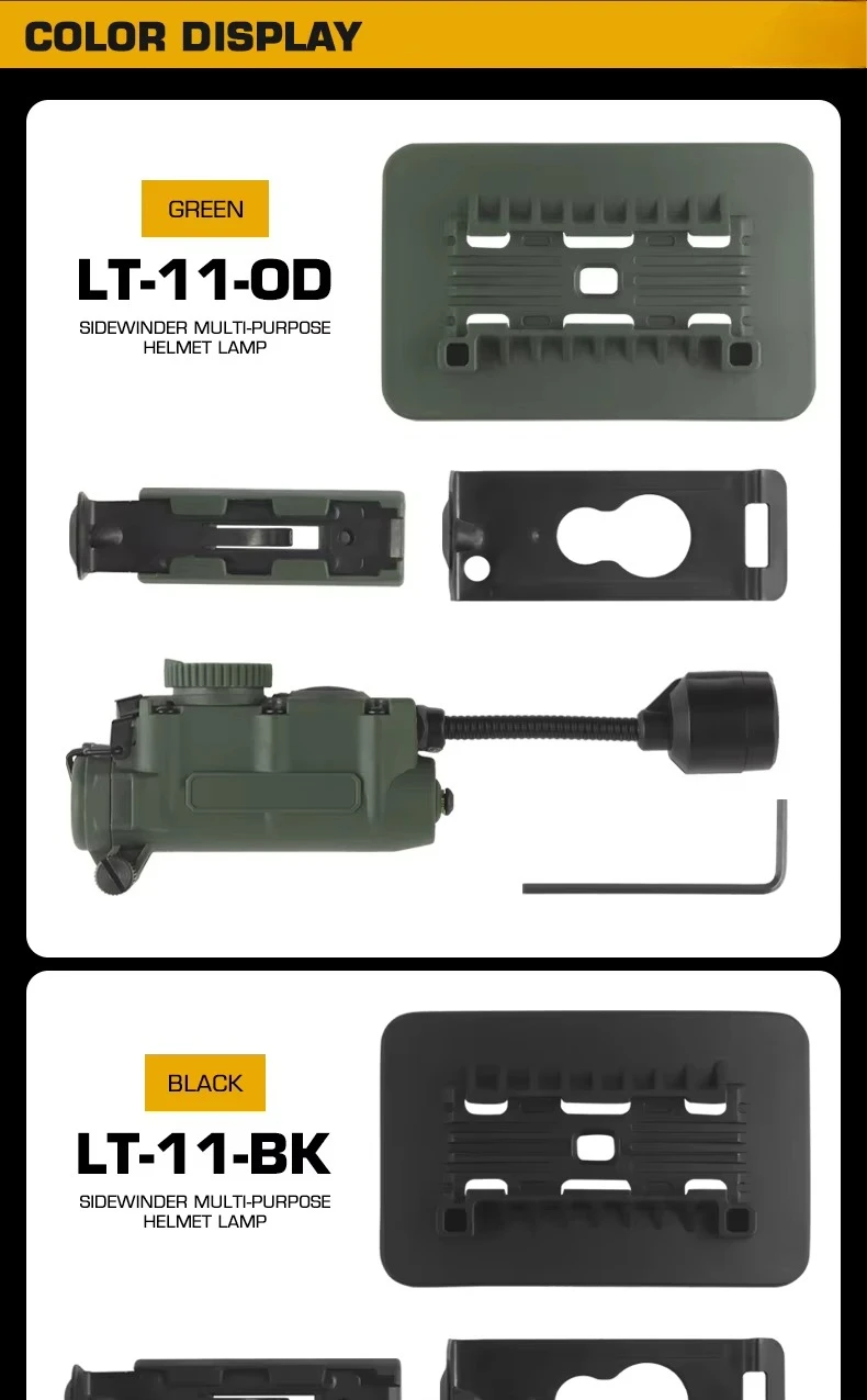 Luz lateral para casco, sistema de 3 soportes, modos de Color infrarrojo IR, linterna ajustable, accesorios para caza al aire libre