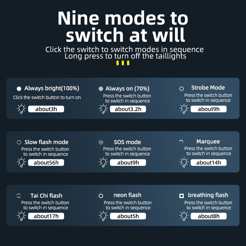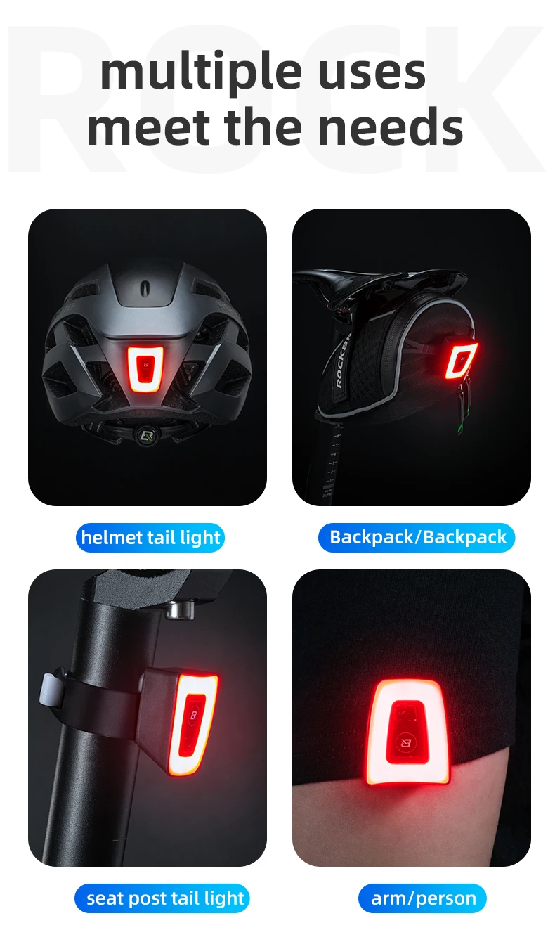 Función: luz trasera de bicicleta, luz trasera de casco, luz de advertencia de bolsa