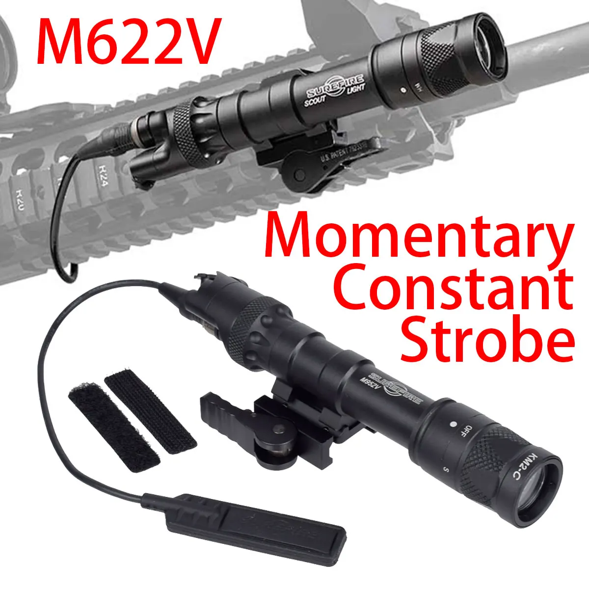 Luz de explorador táctica Surefire M622V, linterna estroboscópica de montaje QD para caza, armas de carabina M4A1, luz montada en Rifle Airsoft