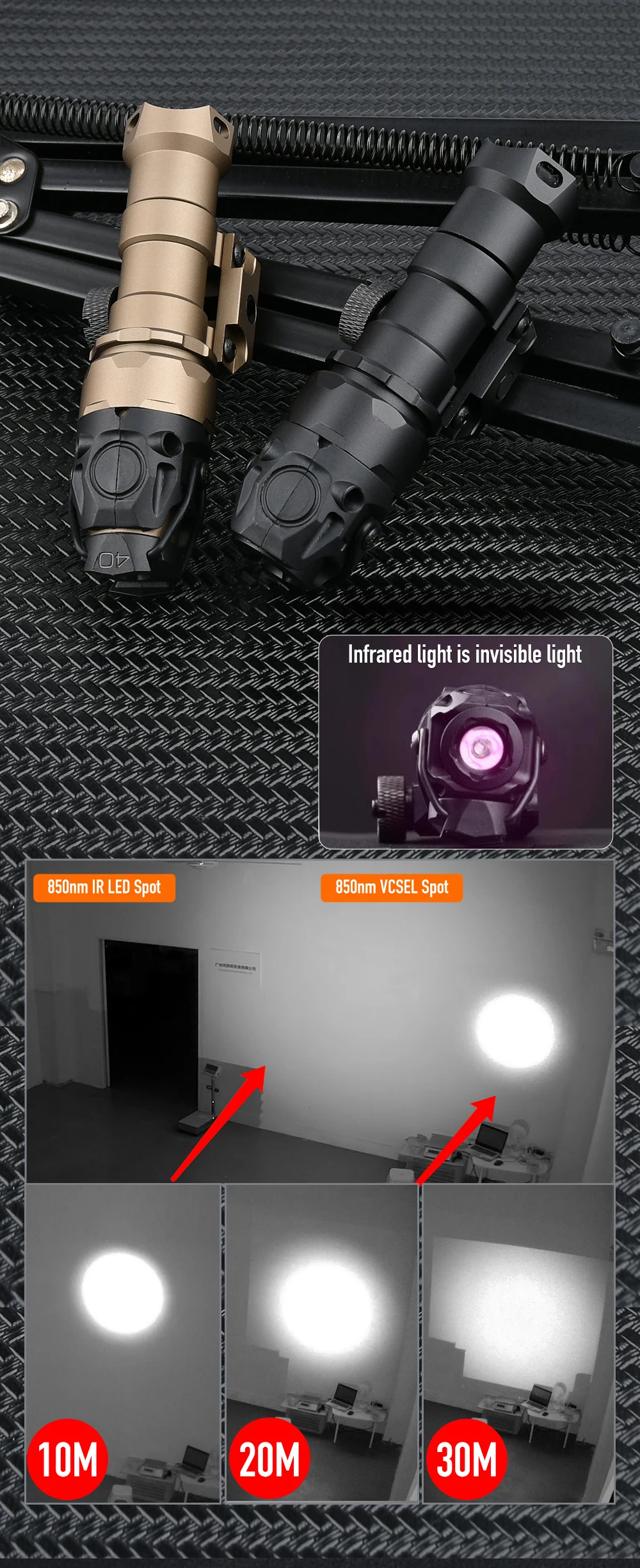 Luz exploradora IR de Metal táctica KIJI K1 K1-10 aluminio CNC IR 850nm iluminación caza K10 luz IR/linterna LED arma luz
