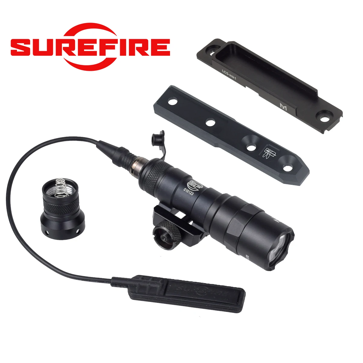 Luz exploradora táctica SureFire M600 M600B M300 con CLOUD DEFENSIVO LCS LCSMK1 ST07 interruptor de cinta Thorntail soporte de luz compensada