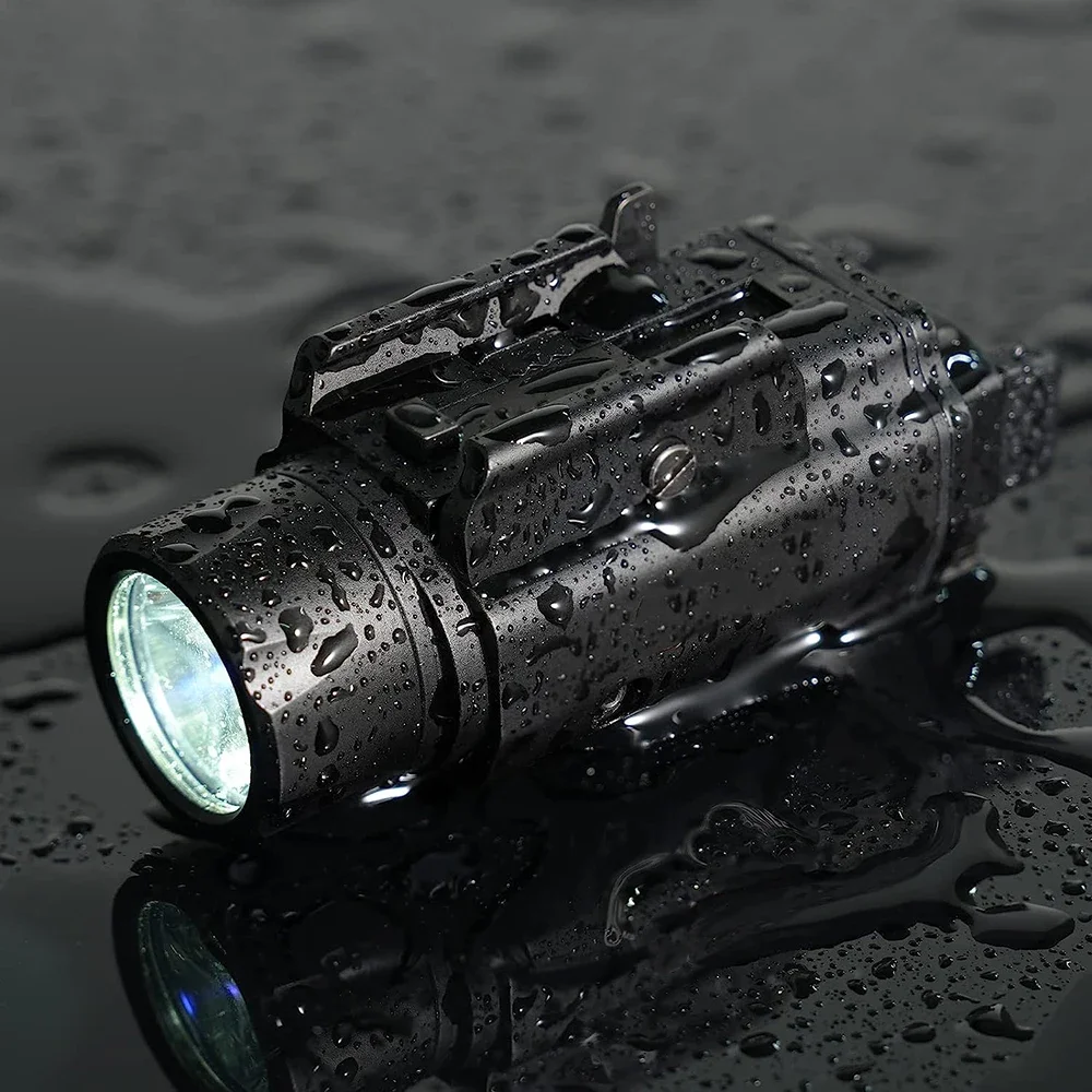 - La luz para armas compacta impermeable IPX7 construida con una carcasa de aluminio anodizado de alta resistencia para aviones es resistente a la corrosión y al desgaste, resistente al agua y a los golpes para su uso en condiciones difíciles.