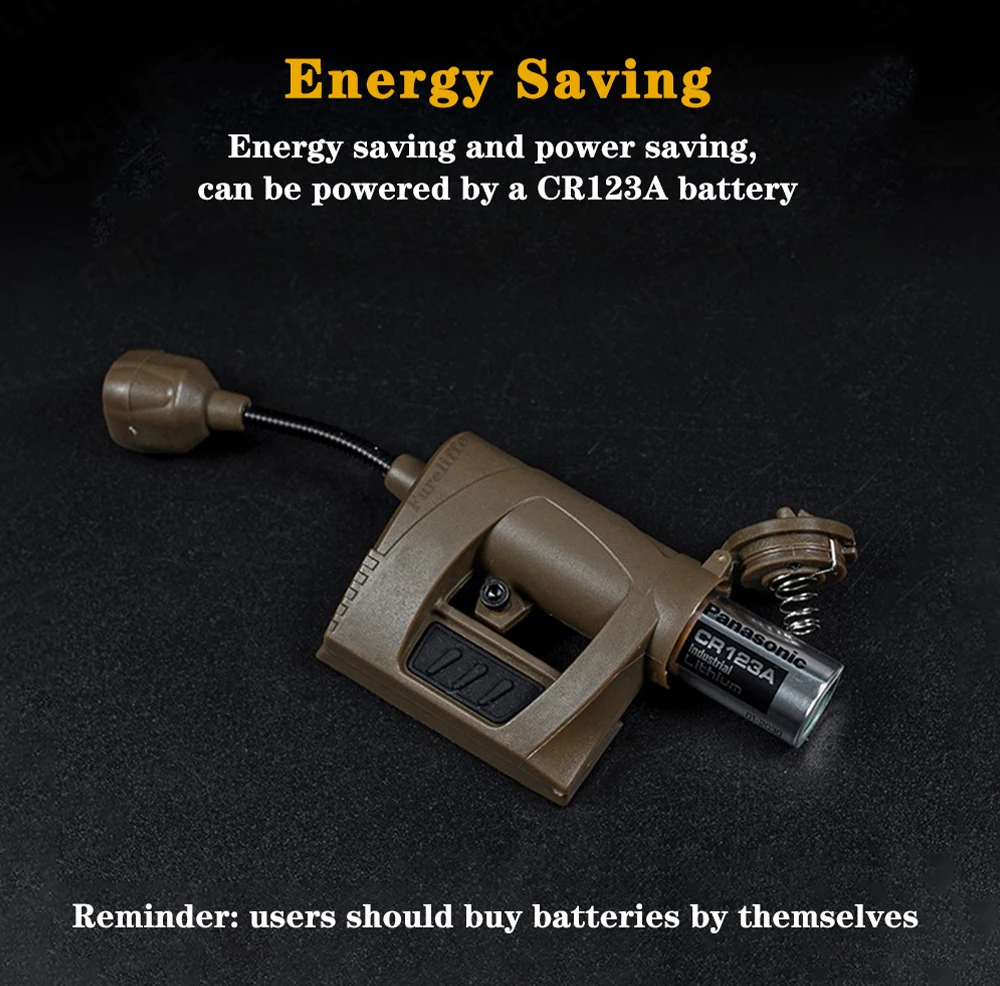 - Ahorro de energía y ahorro de energía, puede funcionar con una batería CR 123A (Recordatorio: los usuarios deben comprar baterías ellos mismos).