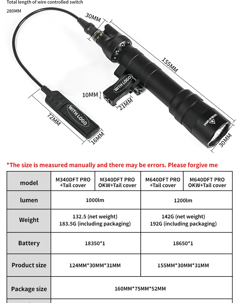 Luz LED M640DFT M340DFT, accesorio de caza al aire libre, interruptor táctico de doble función, linterna con Base MLOK compatible con riel de 21mm