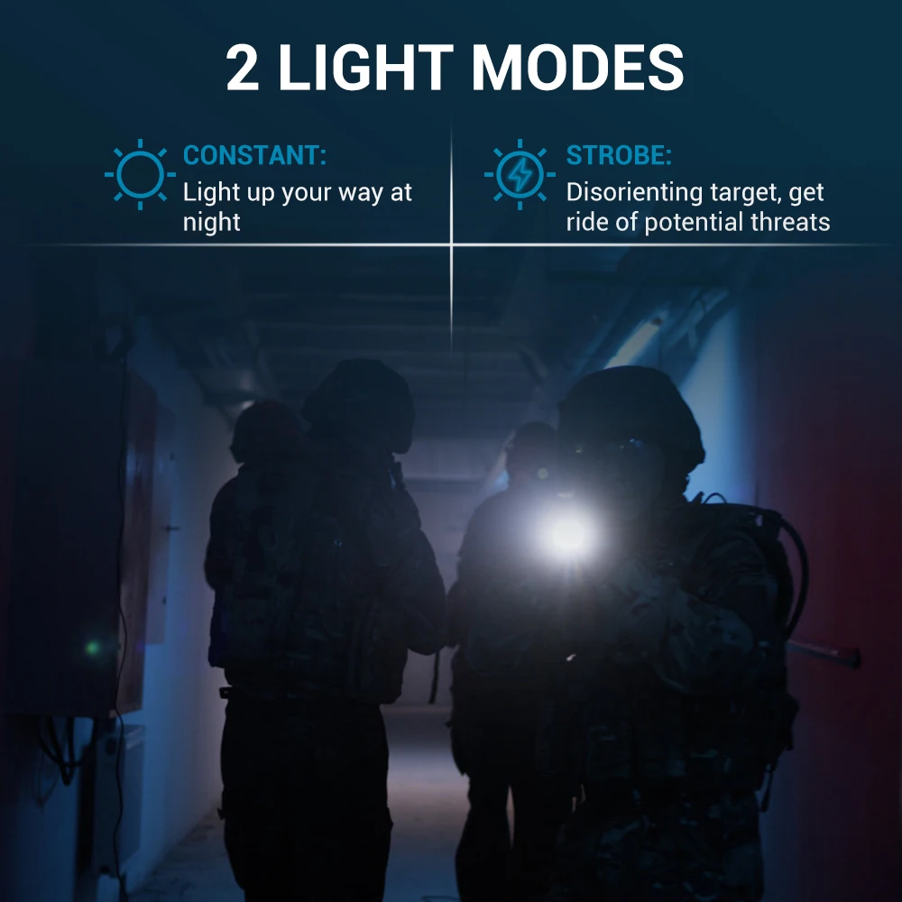 Con 2 modos de luz diferentes, la luz de la pistola se puede utilizar para localizar o desorientar su objetivo enfocado.