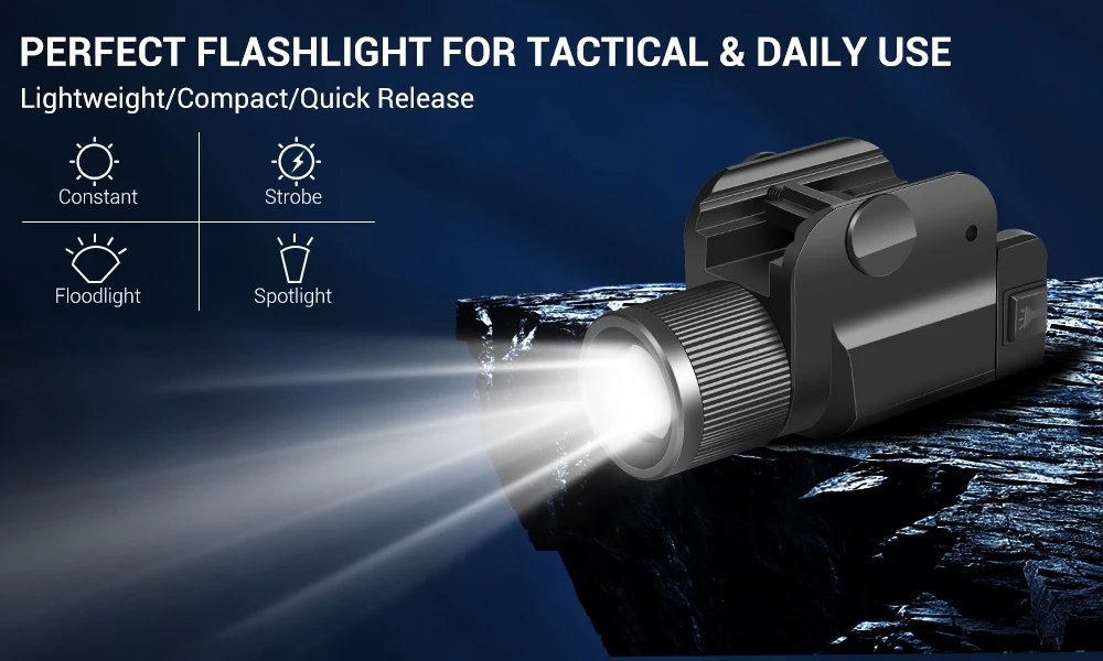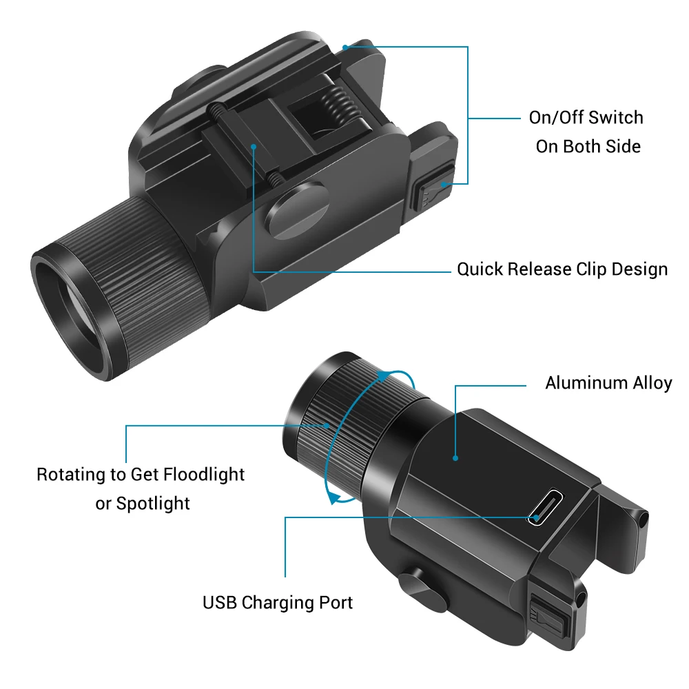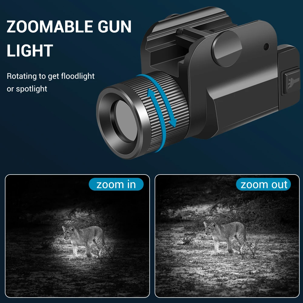 Luz de pistola de 1000 lúmenes, luz de arma con zoom, luz LED de pistola Airsoft, linterna de pistola recargable de liberación rápida