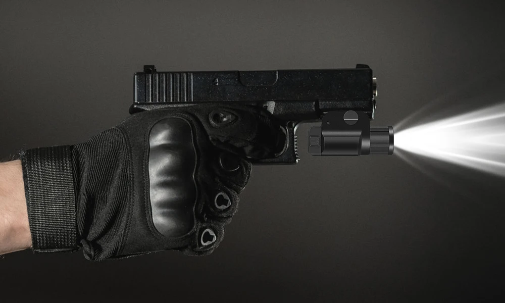 El cuerpo de la linterna de la pistola está construido con aleación de aluminio duradera con acabado anodizado. Ligera, duradera y resistente a los elementos exteriores, la linterna de pistola táctica es ideal para la supervivencia al aire libre.