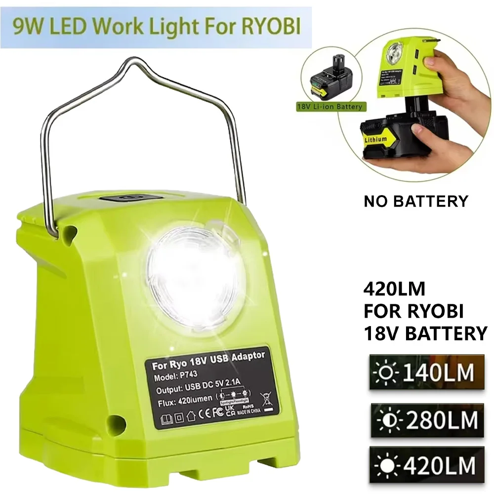 No solo un adaptador de batería para Ryobi de 18 V, sino una luz de emergencia, una luz de trabajo LED y una linterna para acampar al aire libre.