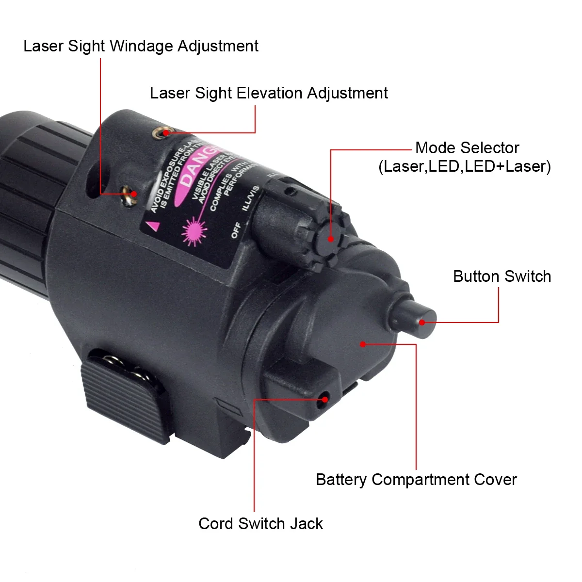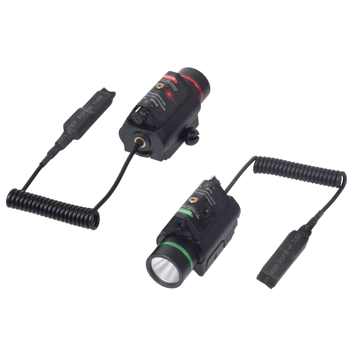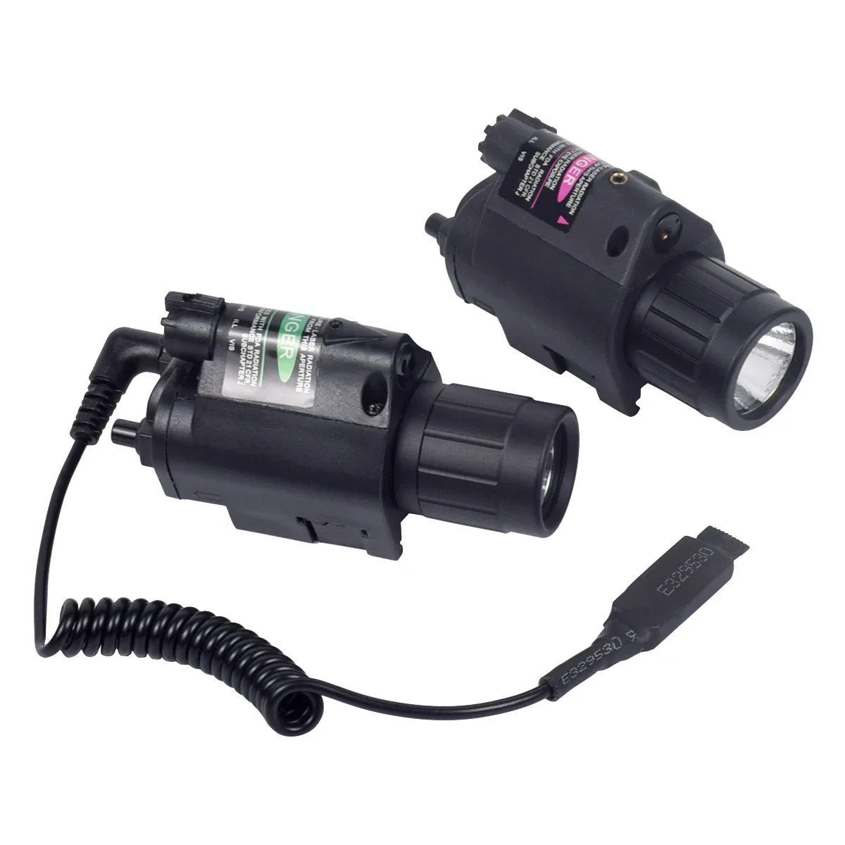 Interruptores duales: el interruptor de botón enciende el haz continuo de la linterna o/y la mira láser. El interruptor remoto del cable incluido gira la linterna o/y la vista láser momentáneamente.