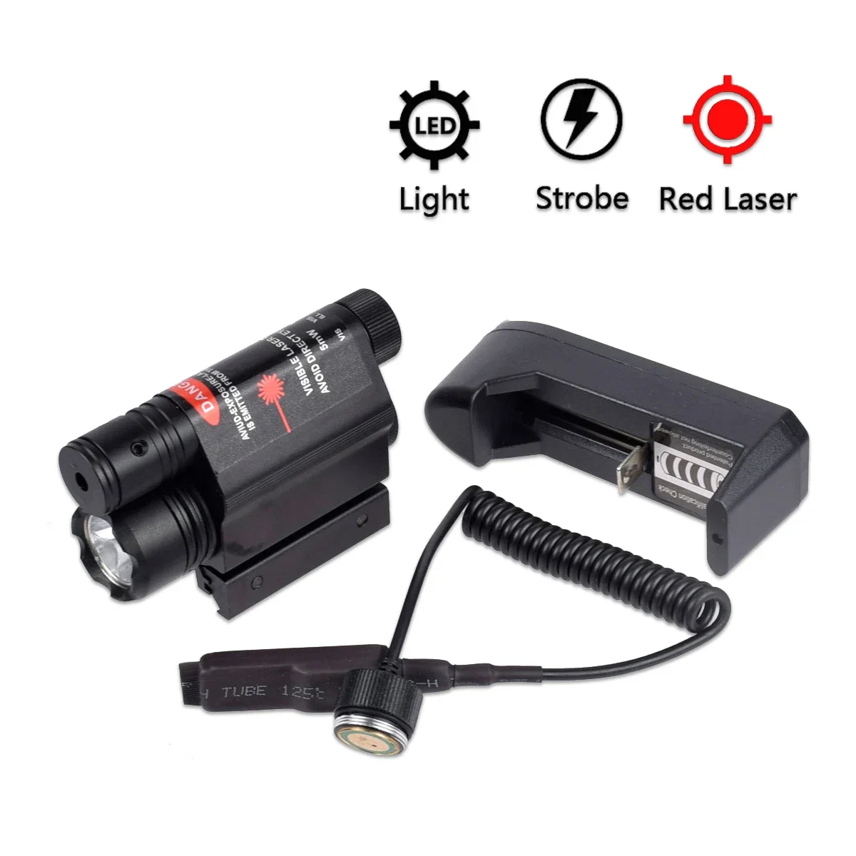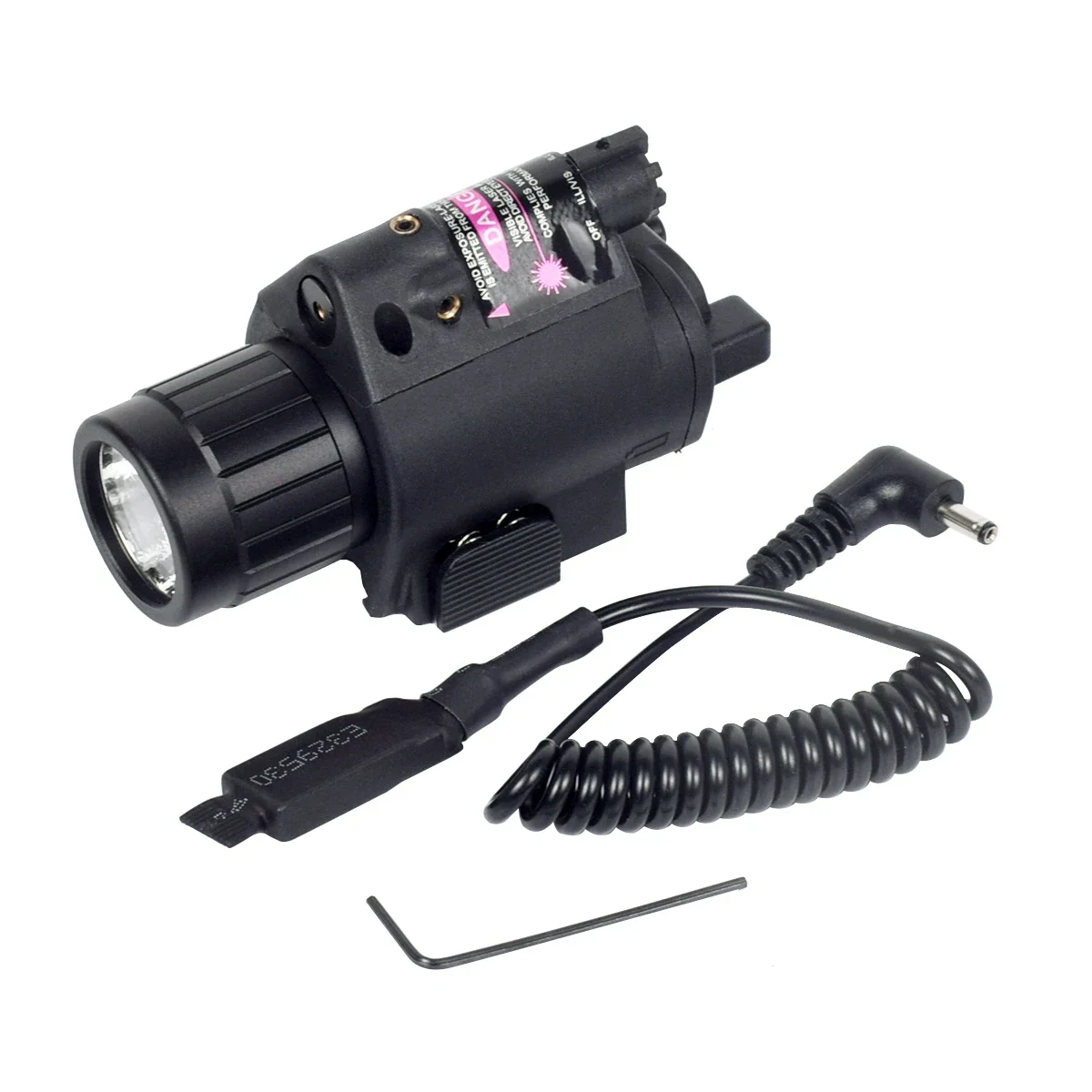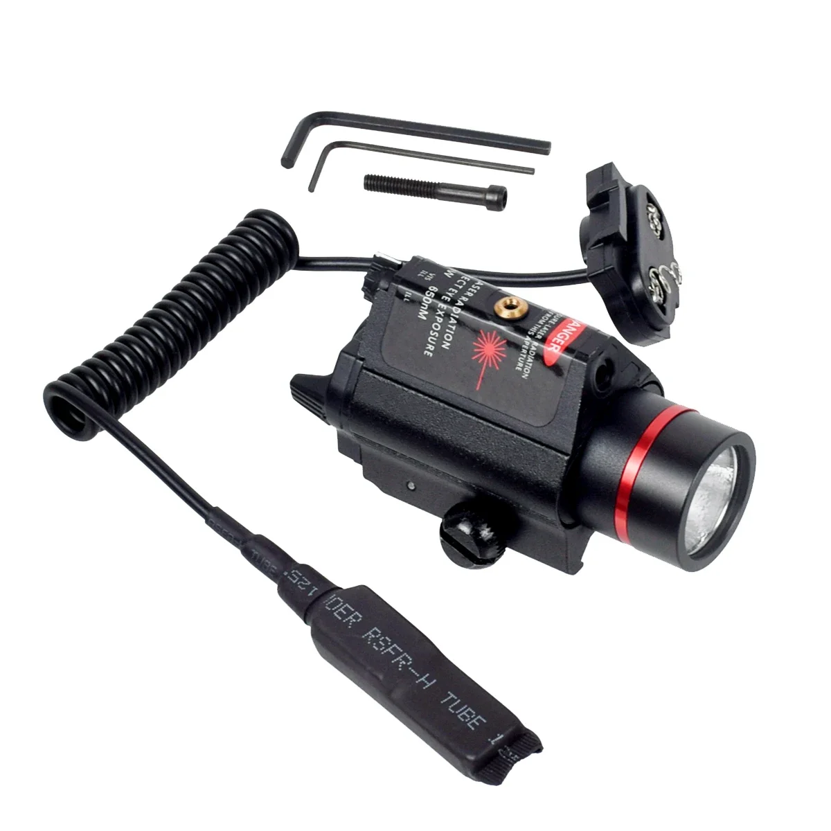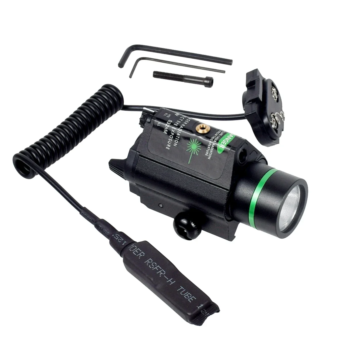 Interruptores duales: el interruptor de botón enciende el haz continuo de la linterna o/y la mira láser. El interruptor remoto del cable incluido gira la linterna o/y la vista láser momentáneamente.