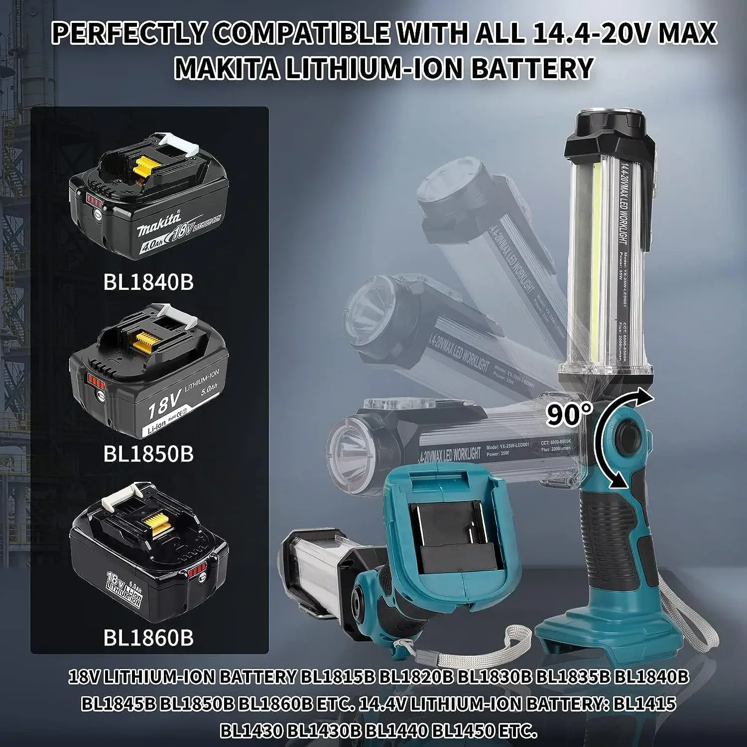 Perfectamente compatible: con baterías de iones de litio Makita de 20 V BL1815 BL1820 BL1830 BL1840 BL1845 BL1850 BL1860, etc.