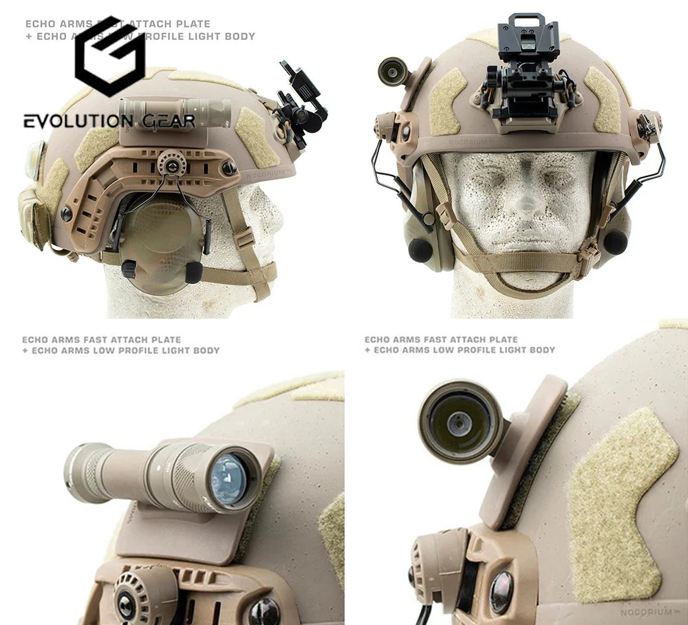 El soporte de luz para casco rápido Sotac de 3 voltios utiliza una interfaz de M-LOK integrada para montarlo directamente en el soporte de fijación rápida. Este diseño atornillado permite que la luz se asiente mucho más baja que cualquier luz montada en un riel 1913. El montaje integrado elimina los pernos y herrajes innecesarios que son pesados, sueltos y propensos al óxido.