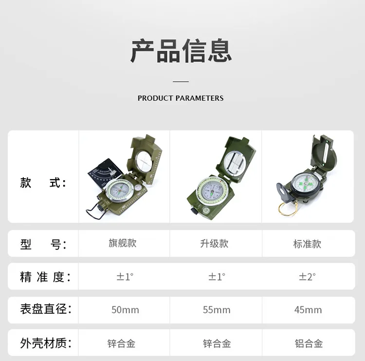 Esta brújula multifuncional para exteriores ofrece múltiples versiones, incluidas ediciones principiantes, profesionales y entusiastas, adecuadas para acampar, hacer caminatas y explorar, etc.Sus principales ventajas son: