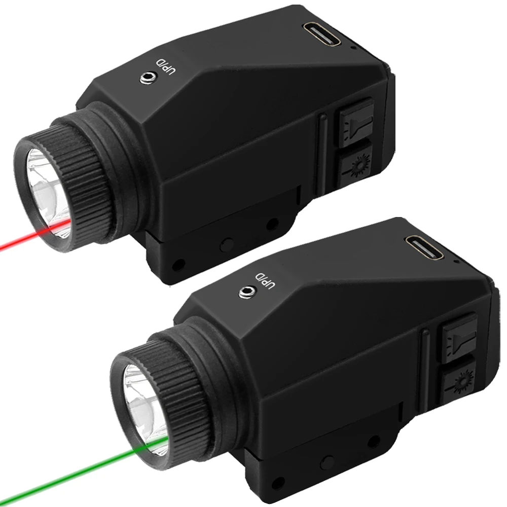 Luz de pistola de 500 lúmenes, pistola combinada láser, luz roja, verde, azul, púrpura, mira láser, luz de pistola recargable por USB, mira láser