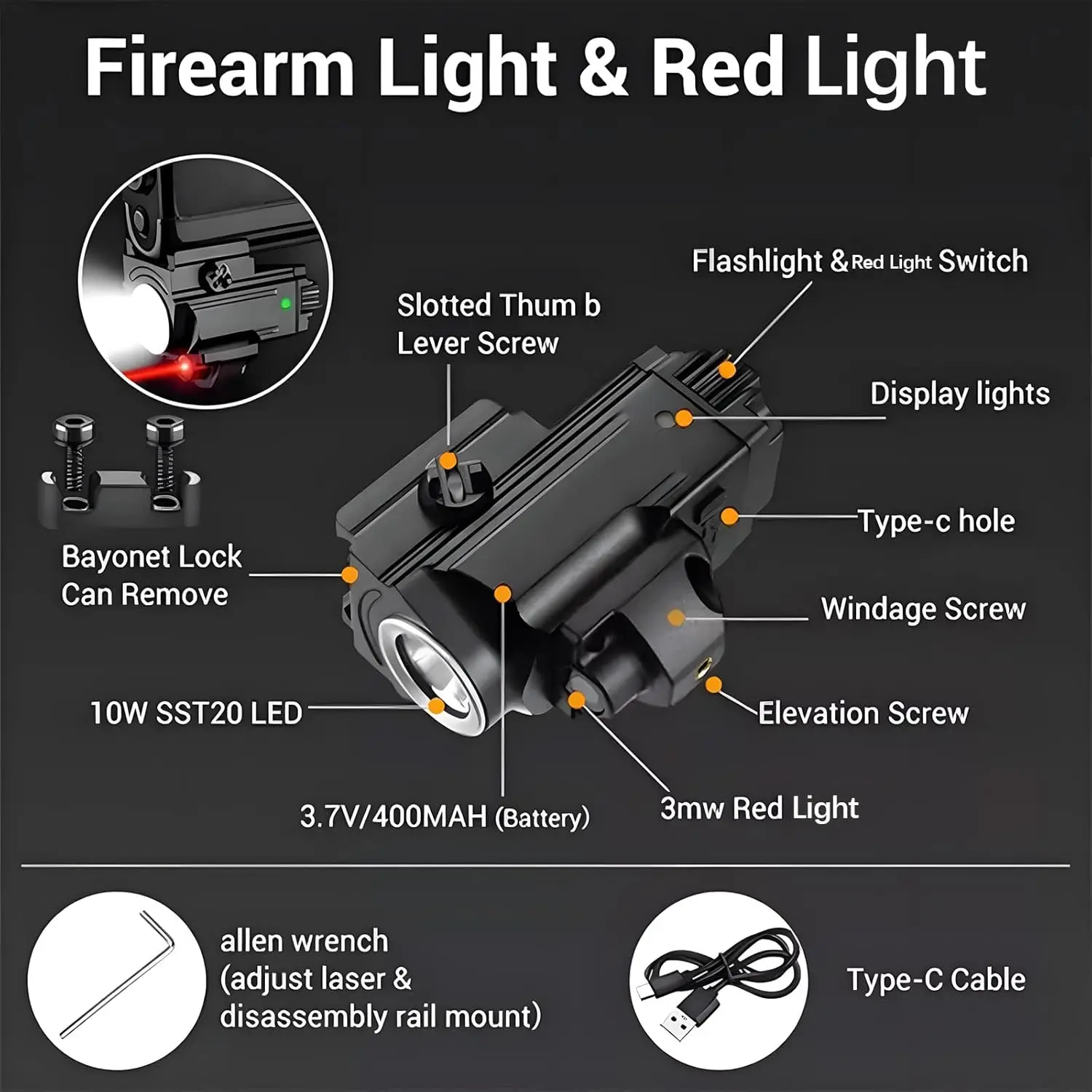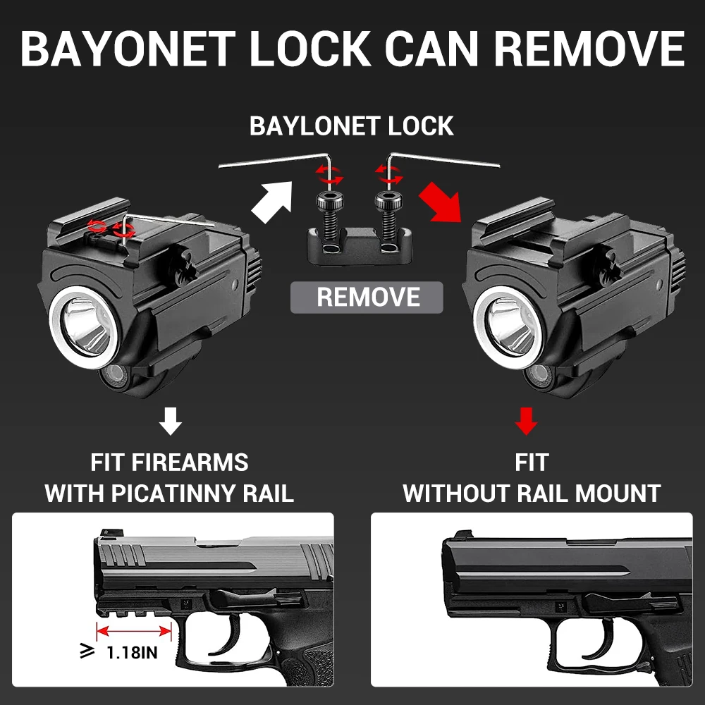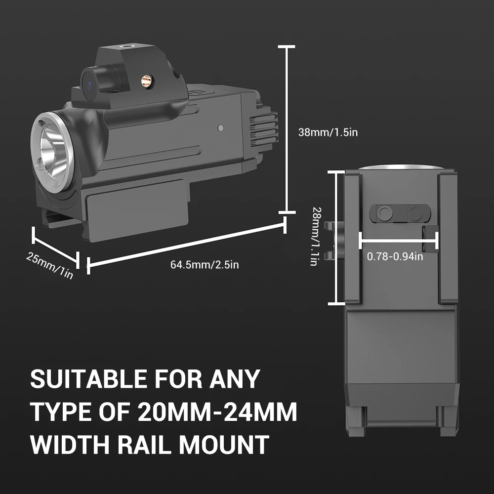 5. 【Recargable por USB-C】Tiempo de funcionamiento de 15 horas con indicador de batería No más cambios de batería.Recargue esta luz de pistola a través de USB-C y controle el estado de carga fácilmente: verde=20%, rojo=20%.Hasta 15 horas de funcionamiento hacen de esta luz de pistola una opción confiable para escenarios de transporte de tareas, EDC o respaldo.