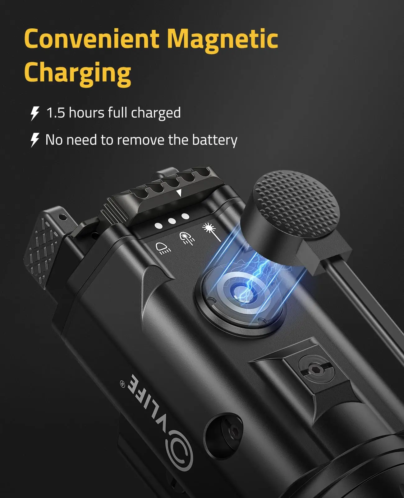 CARGA MAGNÉTICA: el combo láser de linterna adopta un método de carga mejorado: carga magnética, fácil de cargar y la velocidad de carga es rápida.El combo láser de luz de pistola se puede cargar completamente en 1,5 h.El puerto de carga magnético es resistente al polvo y al agua y no se dañará con la lluvia.