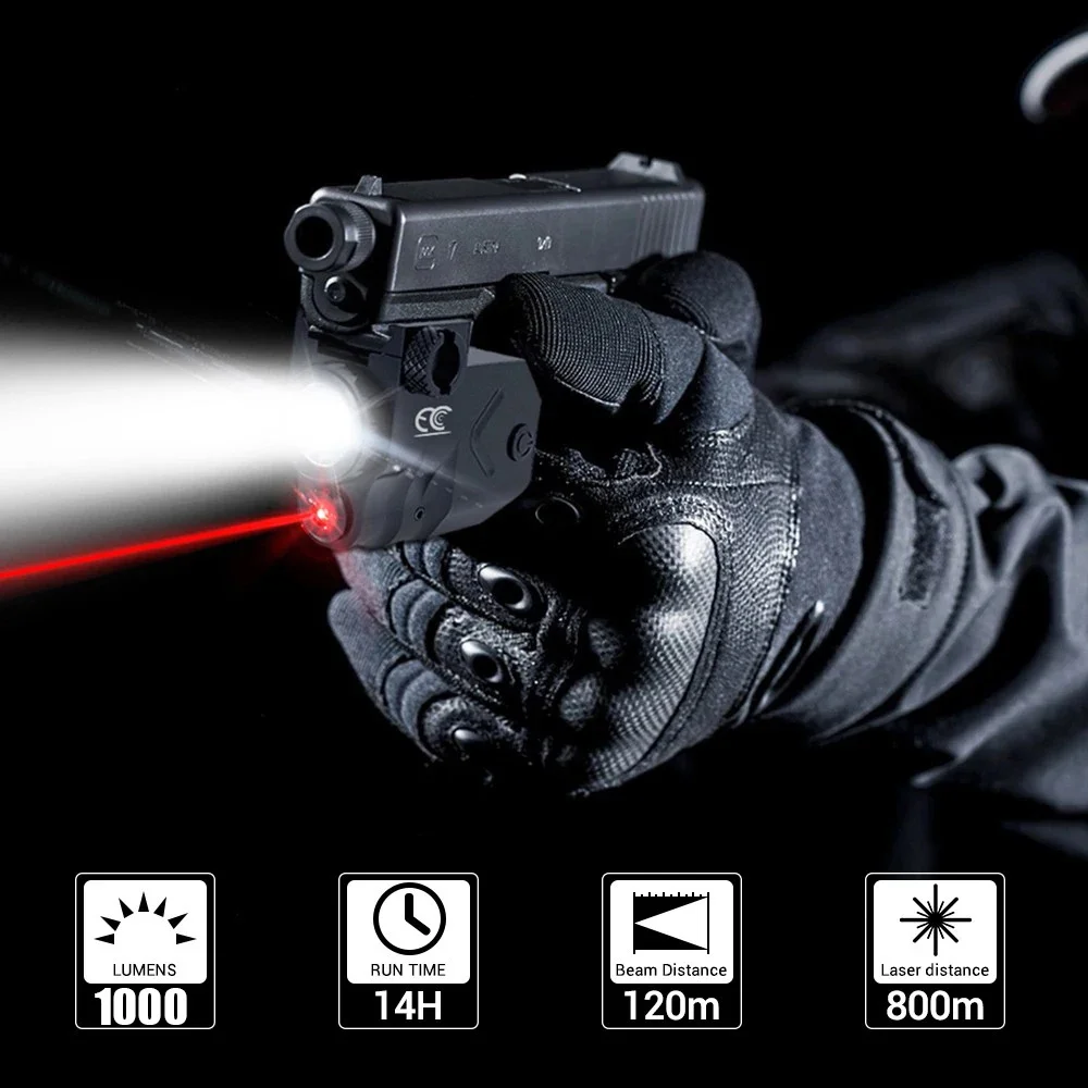 1000 lúmenes arma pistola luz rojo verde láser vista Combo caza linterna vista recargable pistola Luz