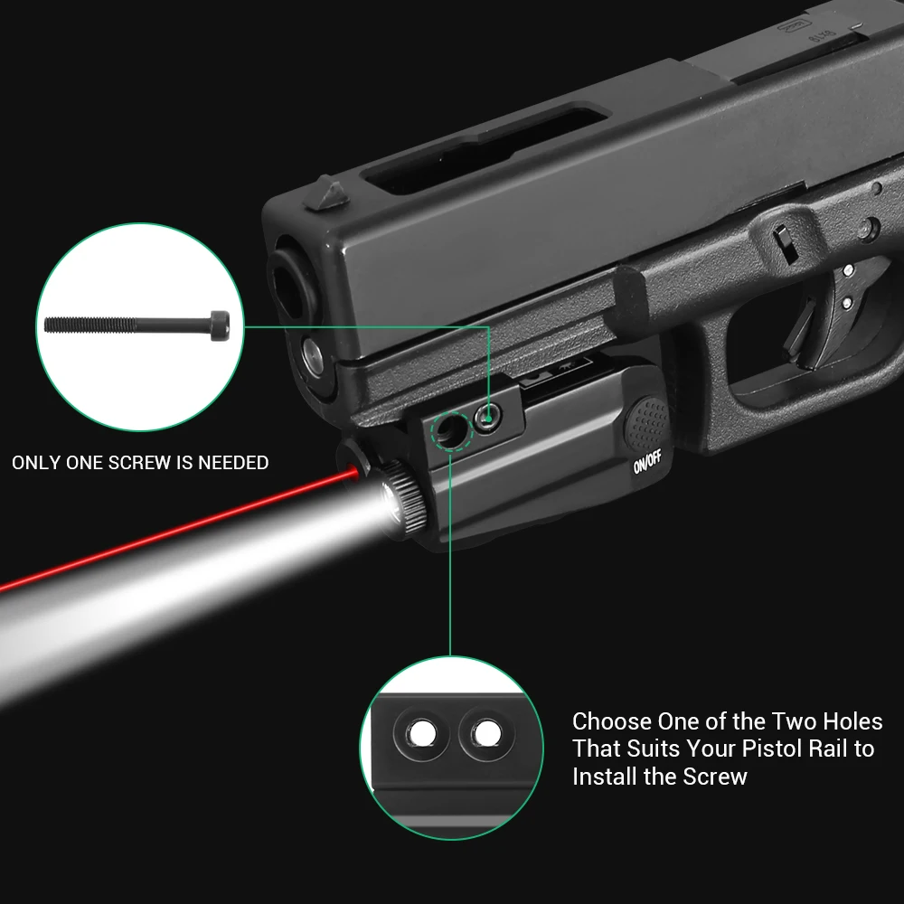 【Interruptor de encendido y apagado ambidiestro】Interruptores láser y de linterna en ambos lados del dispositivo, Cada lado puede operar la función ON/OFF, esto permitirá que tanto la mano izquierda como la mano derecha usen la mira láser.