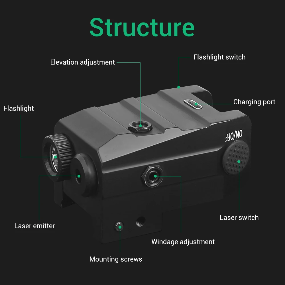 【Duradero y a prueba de golpes 】Hecho de aluminio anodizado de grado aeronáutico robusto, este combo de luz láser es resistente al agua y a los golpes.