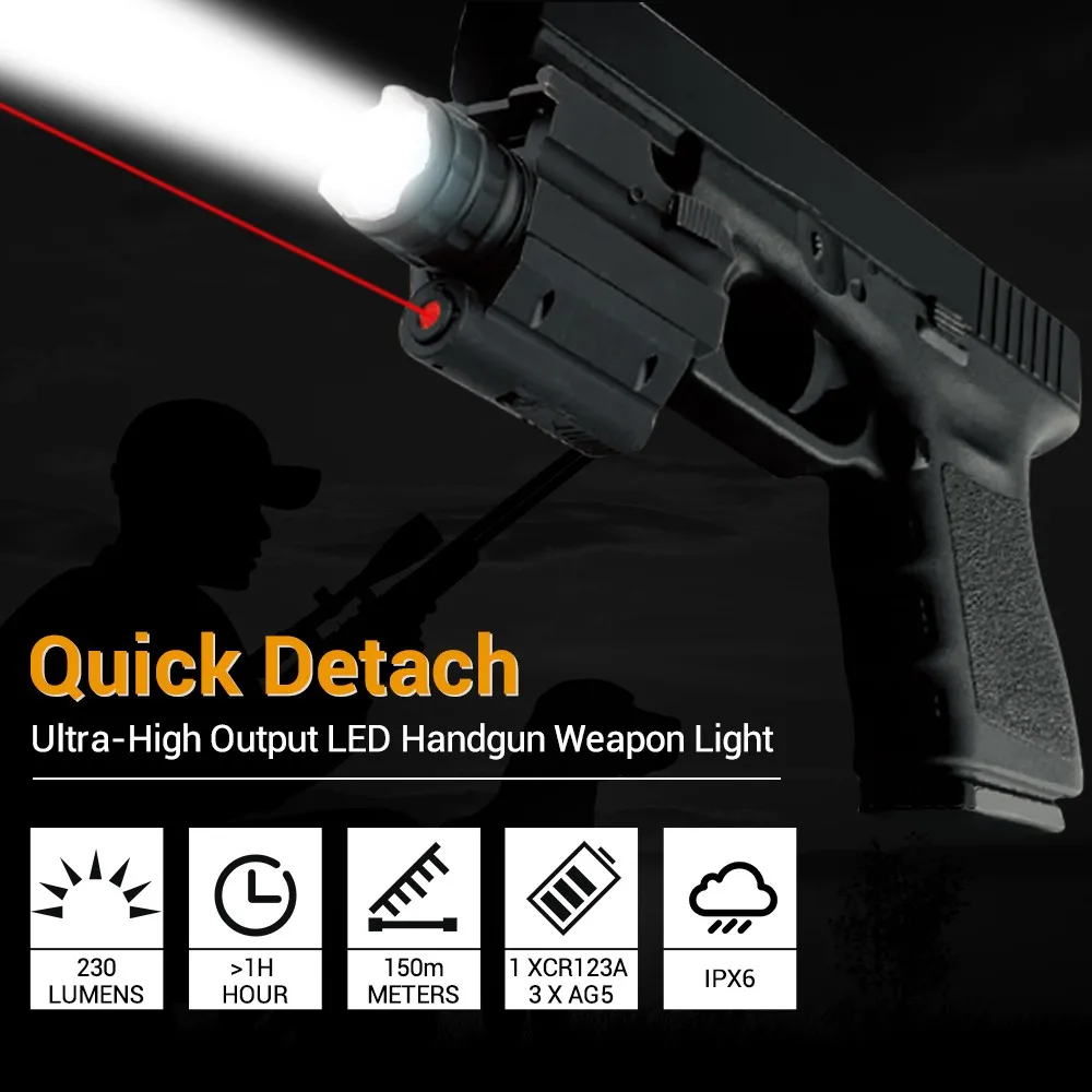 Combo de luz láser de punto rojo para arma táctica, pistola ligera, linterna LED, luz estroboscópica para Airsoft, caza y tiro
