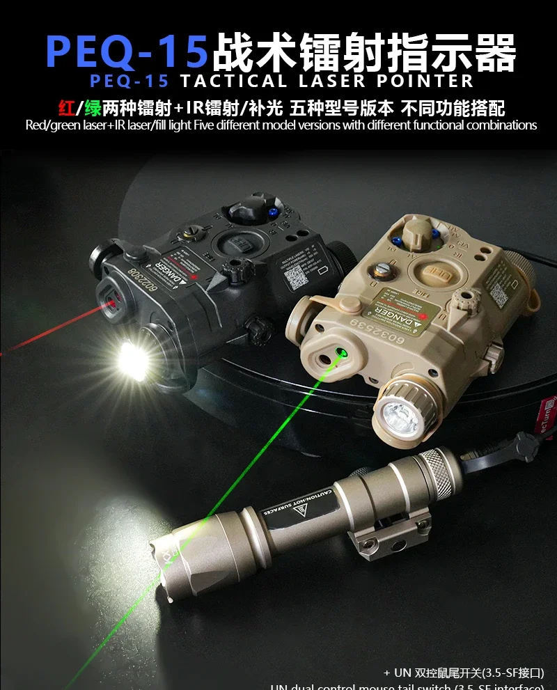 Luz de relleno IR táctica PEQ15/láser IR indicador láser rojo verde Airsoft caza M600C luz de explorador Axon interruptor de doble función