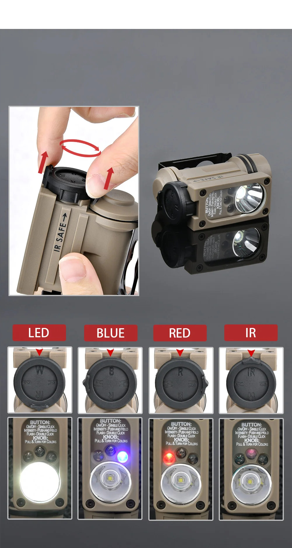 Luz de rescate portátil WADSN Compact II con diadema, luz de señal de flash de iluminación con función IR multifuncional, linterna para casco