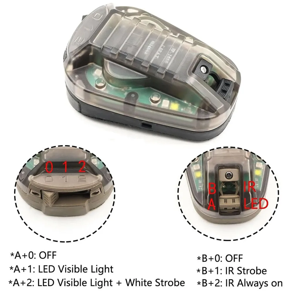 Luz de señal táctica para casco, 4 modos, luz de supervivencia al aire libre, lámpara Flash estroboscópica IR, luz roja, verde y azul para casco para caza y escalada