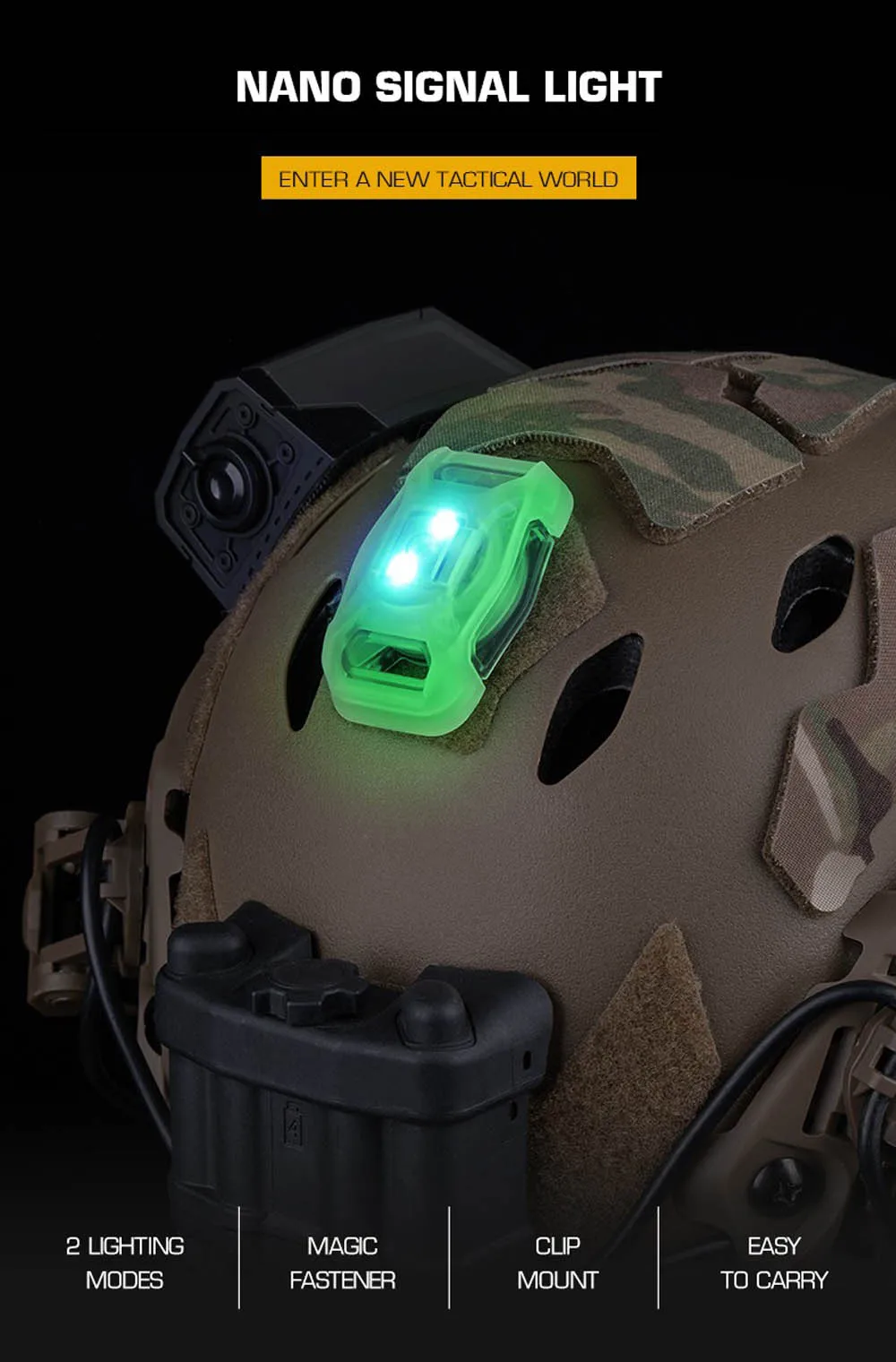 NANO-luz de señal táctica para casco, 2 modos, caza al aire libre, deportes, supervivencia, luz de señal estroboscópica de seguridad, equipo de montaje del sistema MOLLE