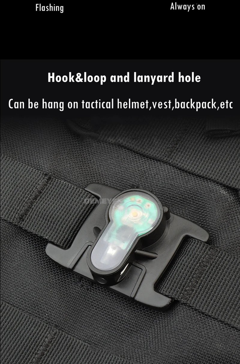 ● Esta luz de señal táctica es un artículo esencial para sus actividades al aire libre, como ciclismo, senderismo, caza. Puede colgarlo en su chaleco táctico, mochila, etc.