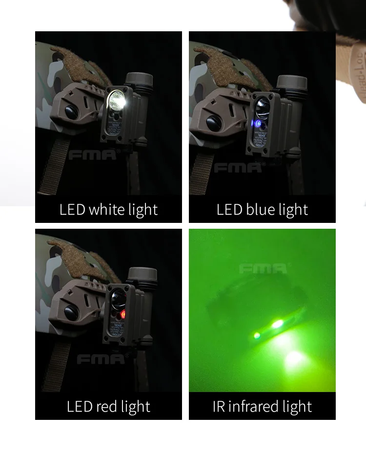Luz de supervivencia compacta táctica FMA Gen 2 con correa para la cabeza, luz baja IR, señal intermitente de 3 colores, modelo TB1474