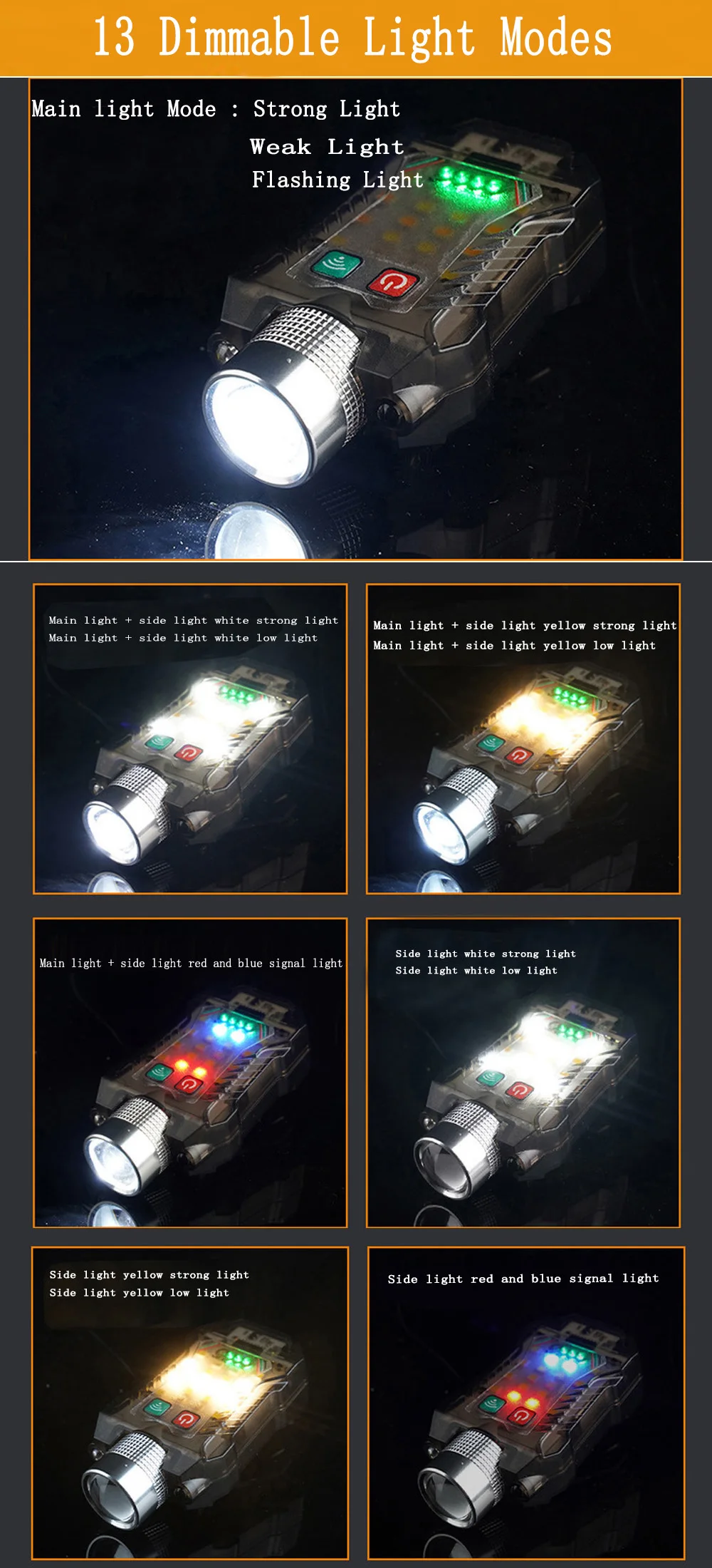 Luz LED recargable 1-USB, 13 modos de trabajo